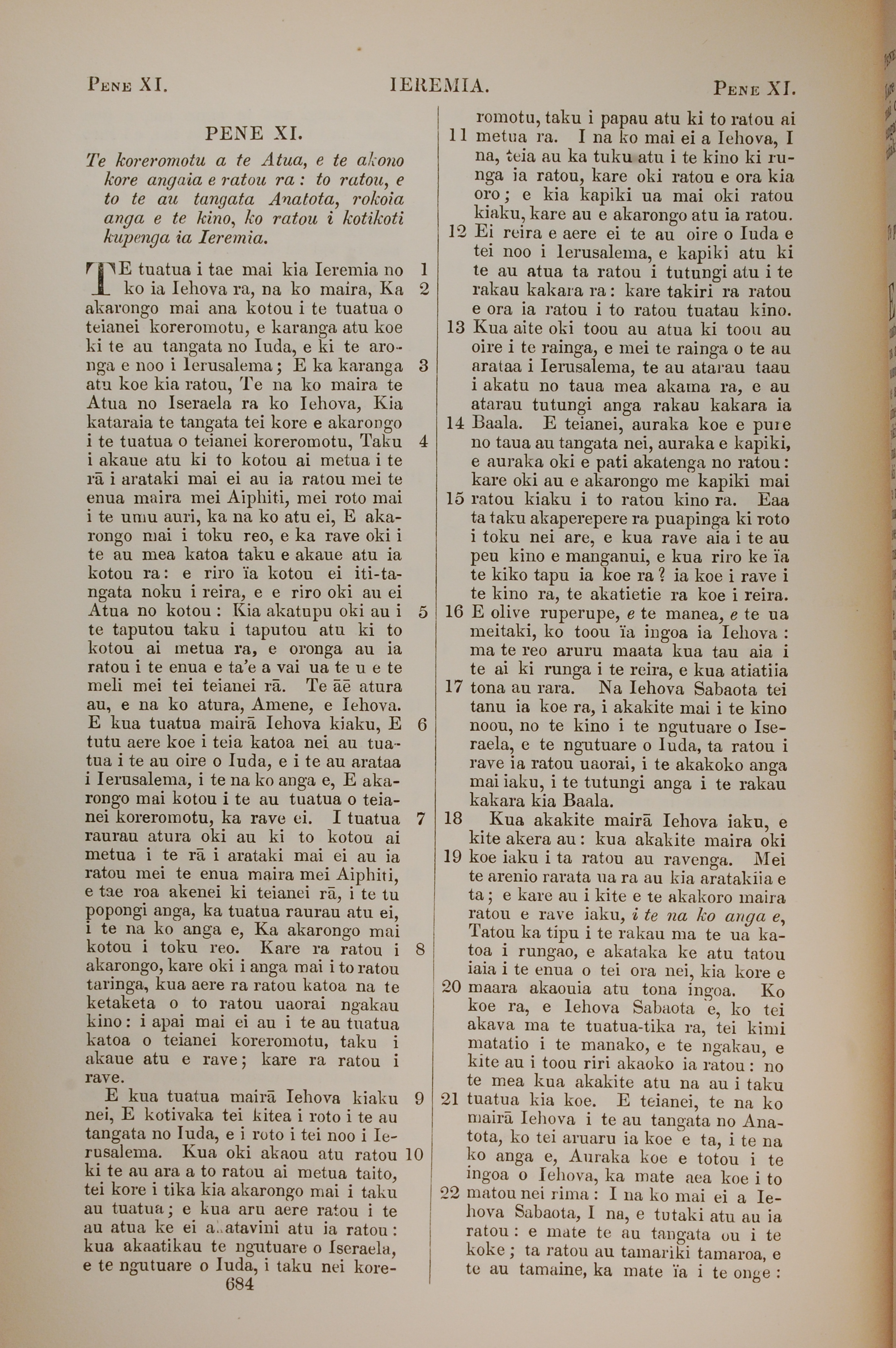 1851年BIBILA TAPU RA 耶利米書 11 章 1 節到 11 章 22 節