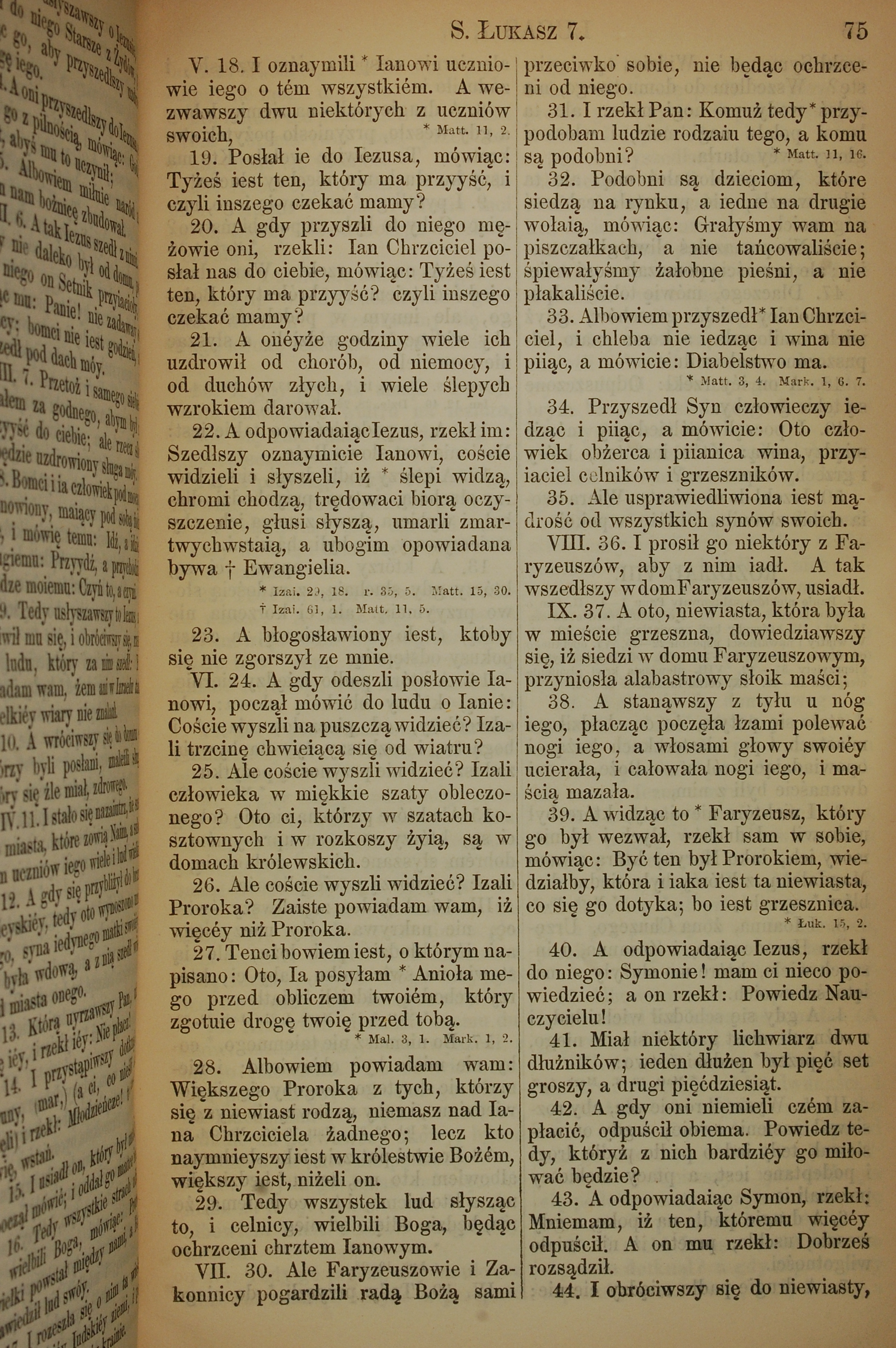 1857年波蘭文新舊約全書 路加福音 7 章 18 節到 7 章 44 節