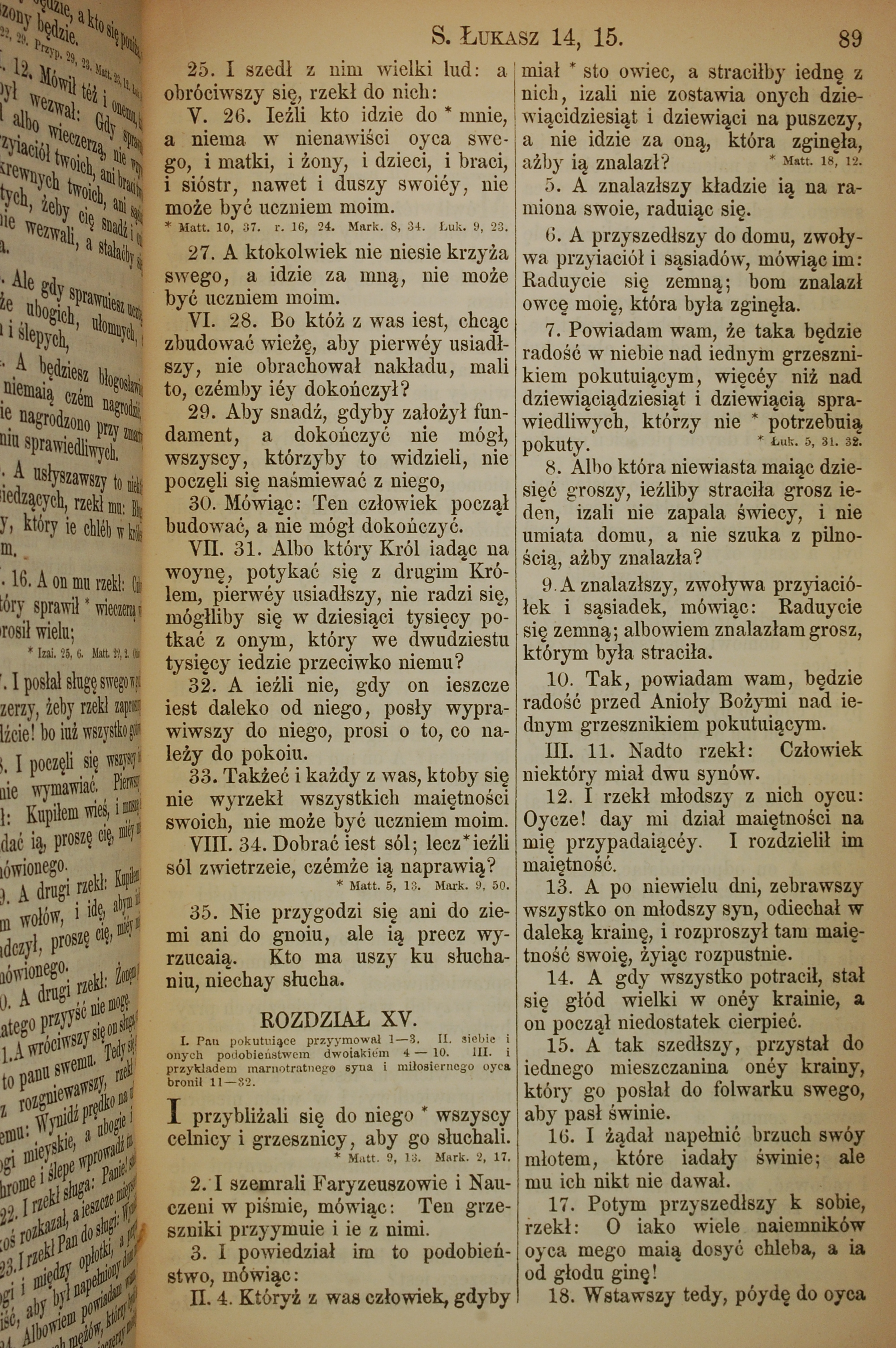 1857年波蘭文新舊約全書 路加福音 14 章 25 節到 15 章 18 節