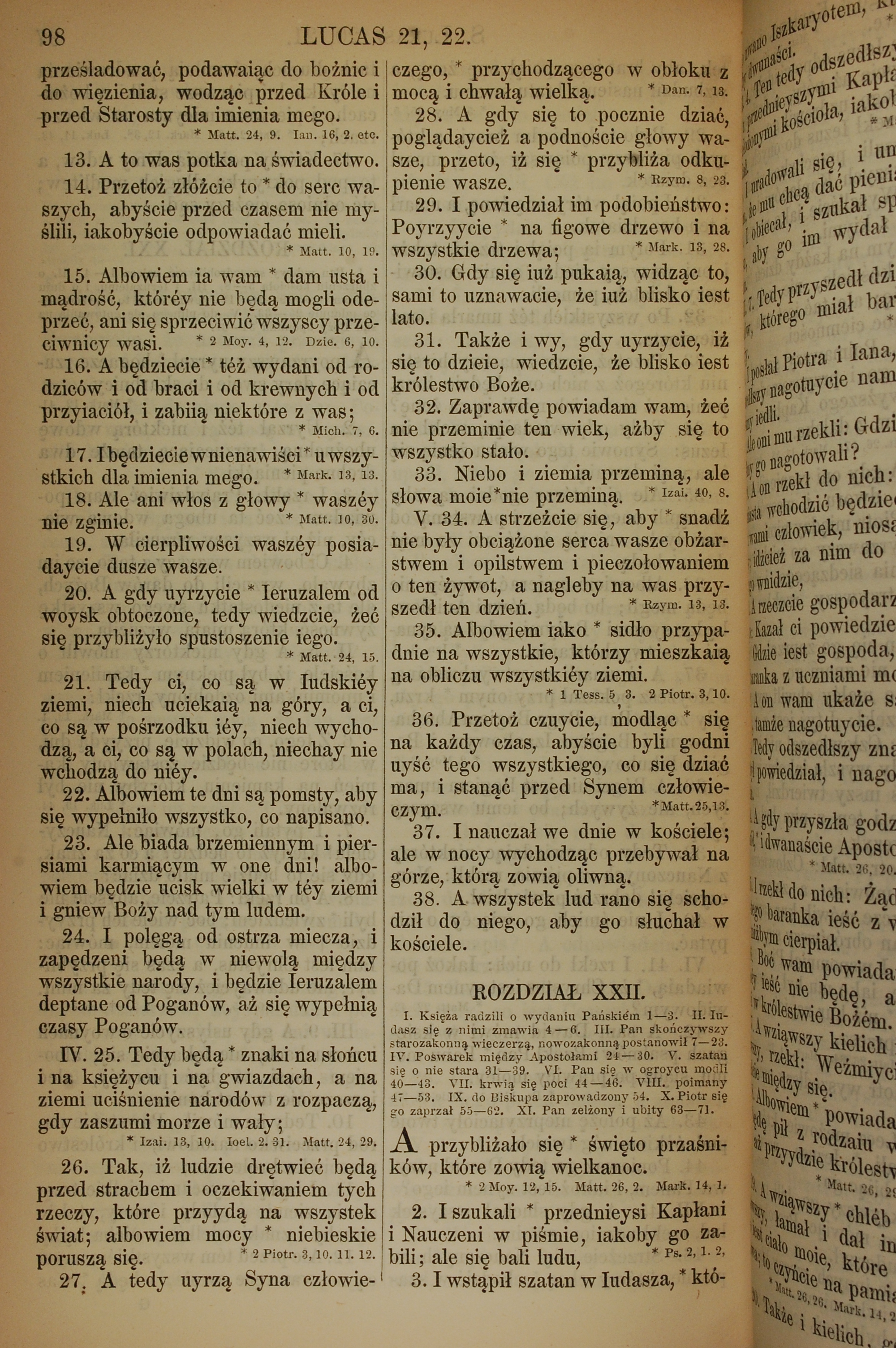 1857年波蘭文新舊約全書 路加福音 21 章 13 節到 22 章 3 節