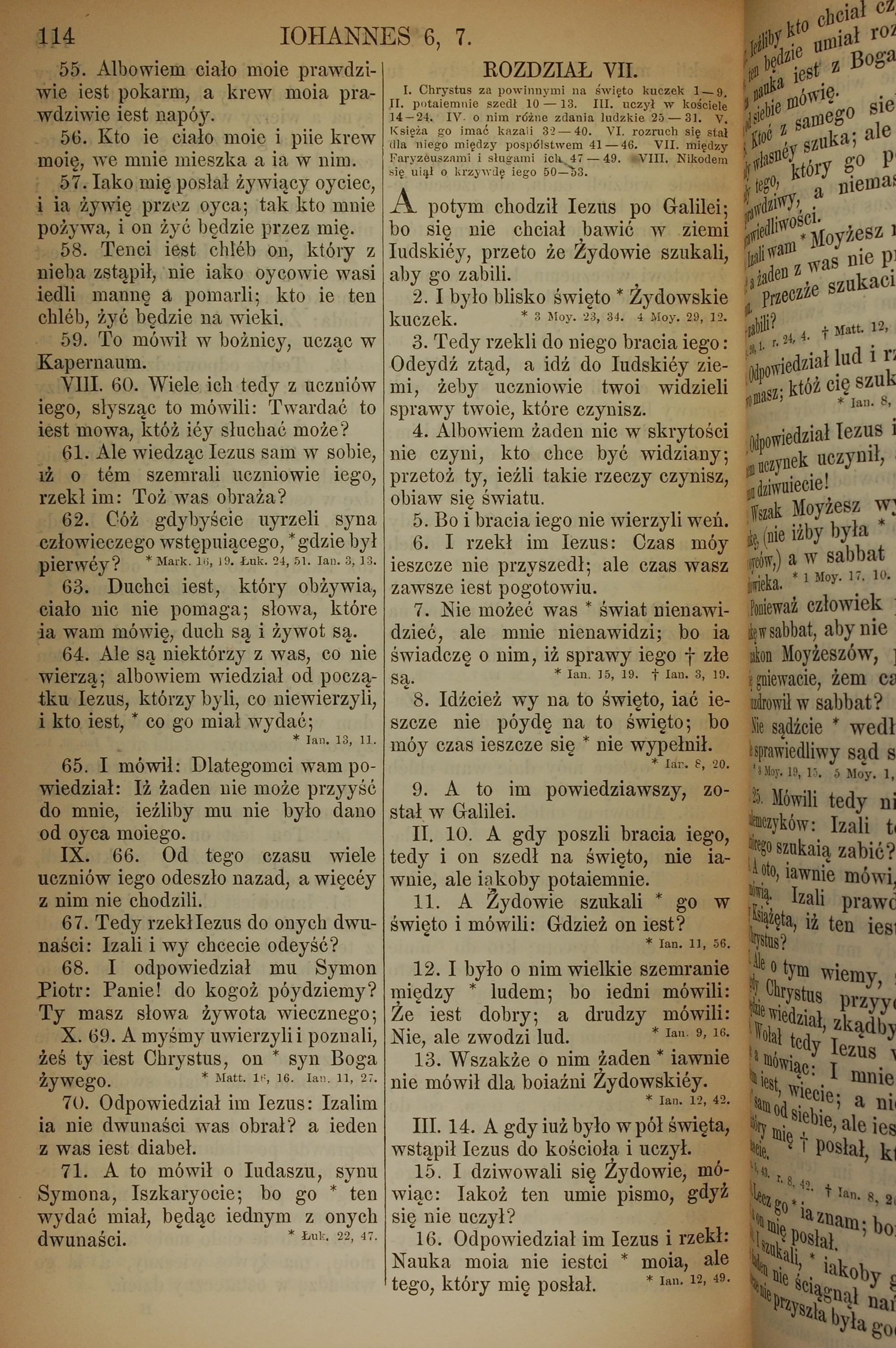1857年波蘭文新舊約全書 約翰福音 6 章 55 節到 7 章 16 節