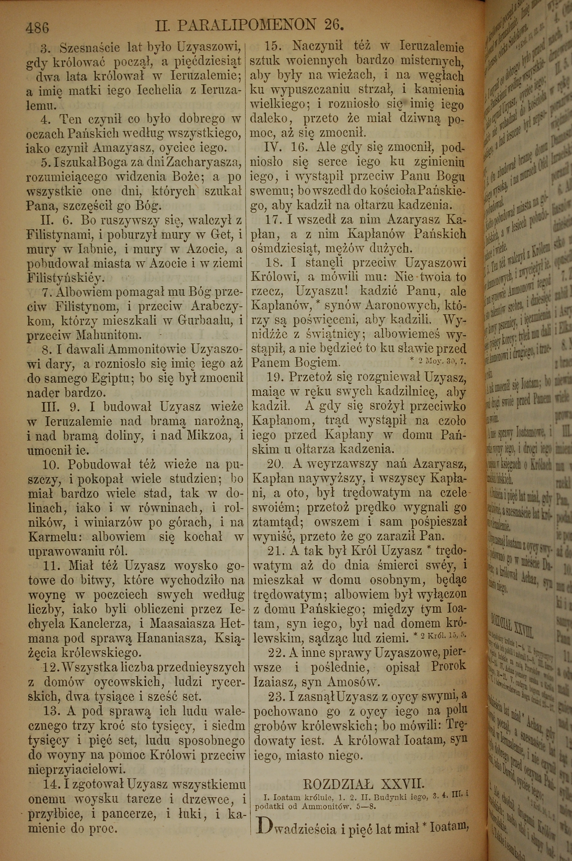 1857年波蘭文新舊約全書 歷代志下 26 章 3 節到 27 章 1 節