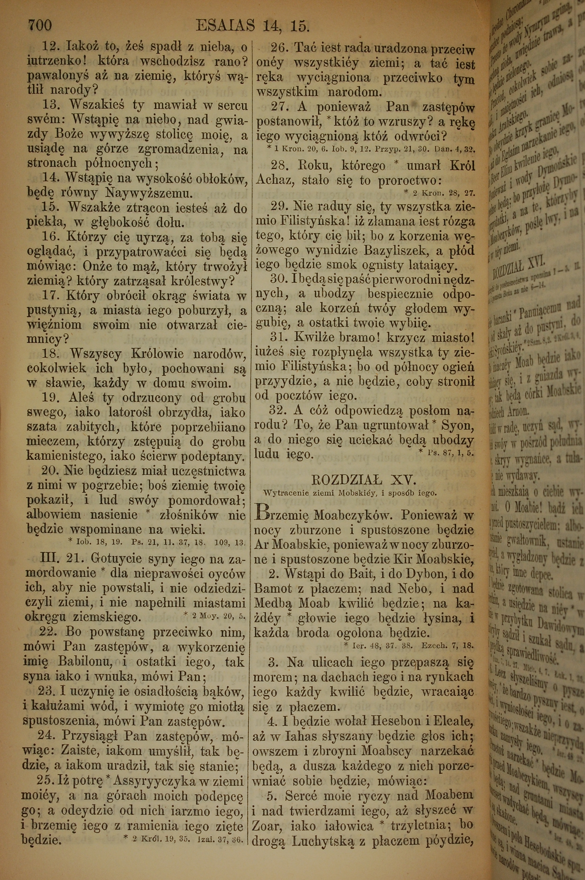 1857年波蘭文新舊約全書 以賽亞書 14 章 12 節到 15 章 5 節