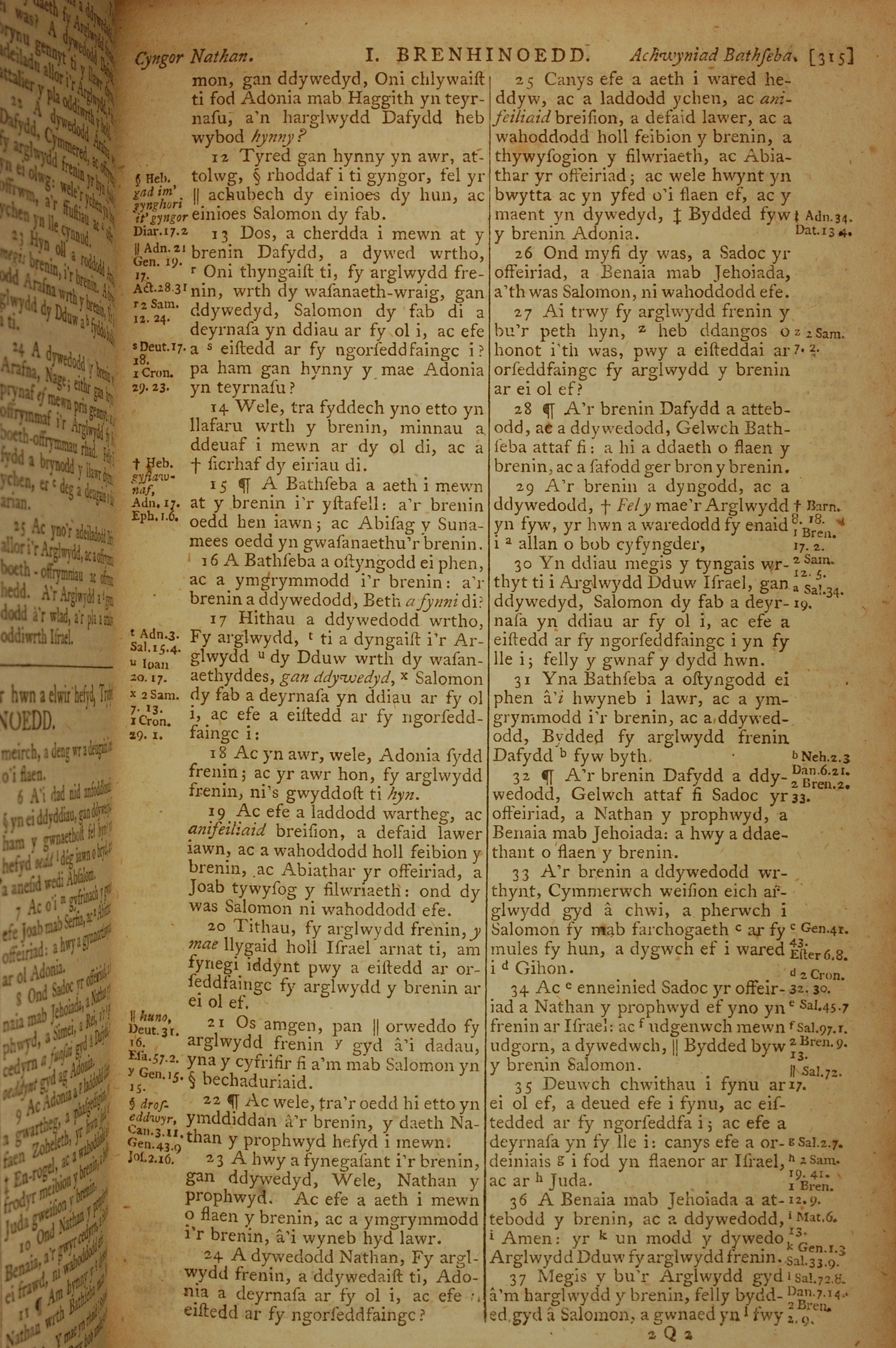 1796年威爾斯文新舊約全書 列王紀上 1 章 12 節到 1 章 37 節