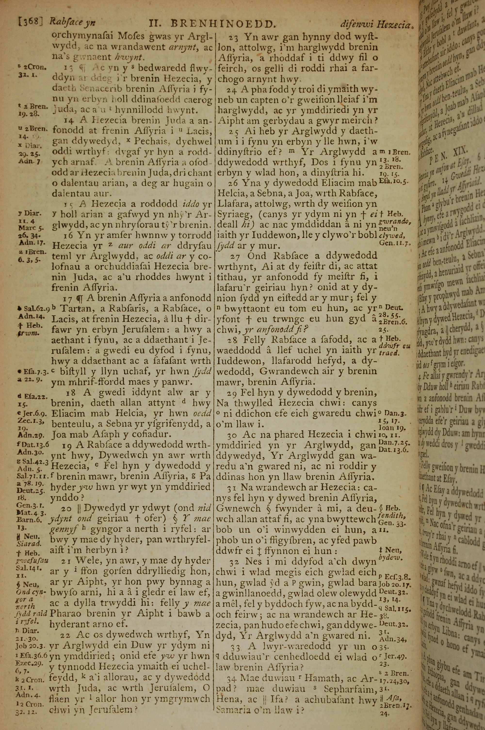 1796年威爾斯文新舊約全書 列王紀下 18 章 13 節到 18 章 34 節