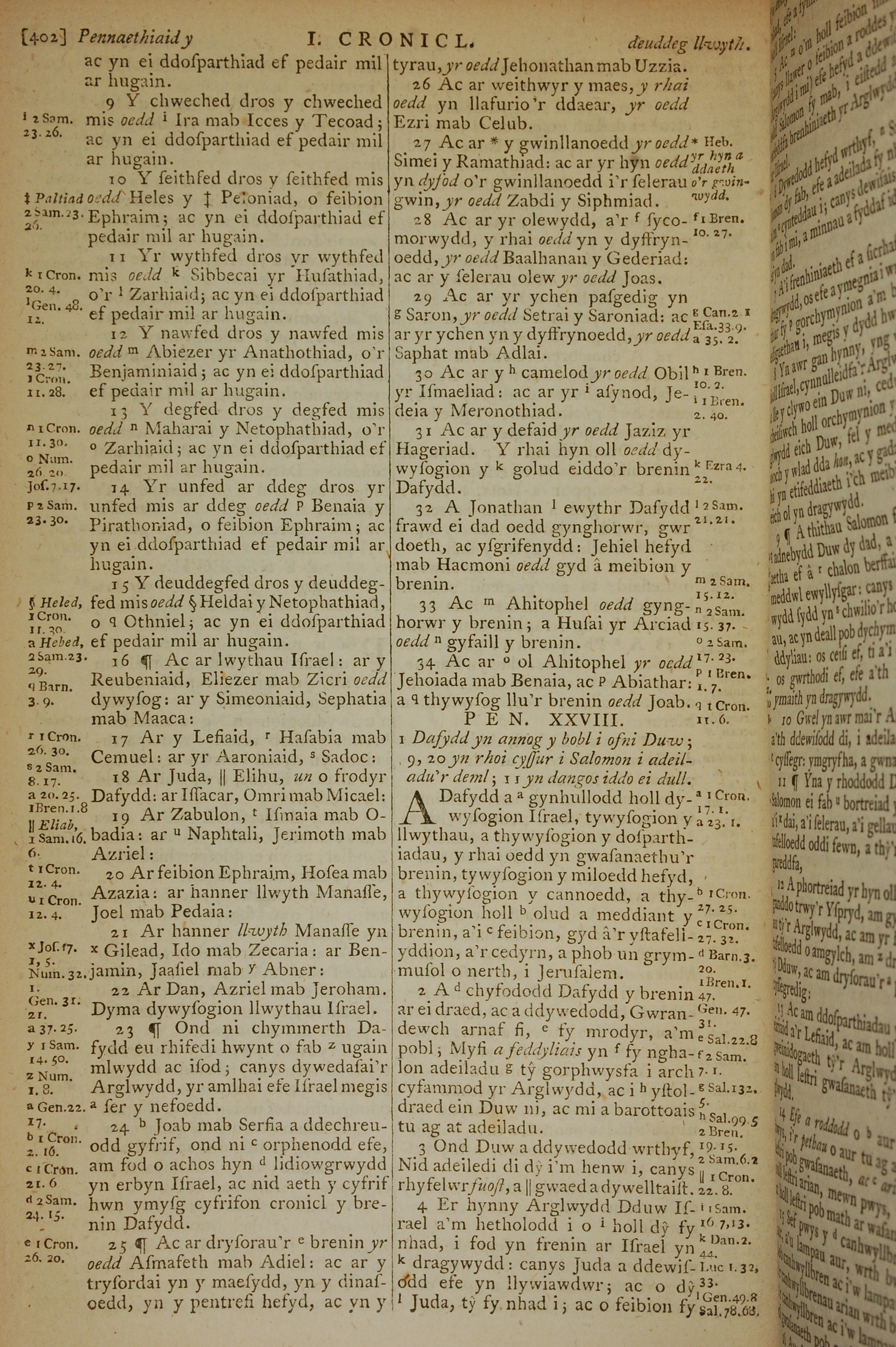 1796年威爾斯文新舊約全書 歷代志上 27 章 9 節到 28 章 4 節