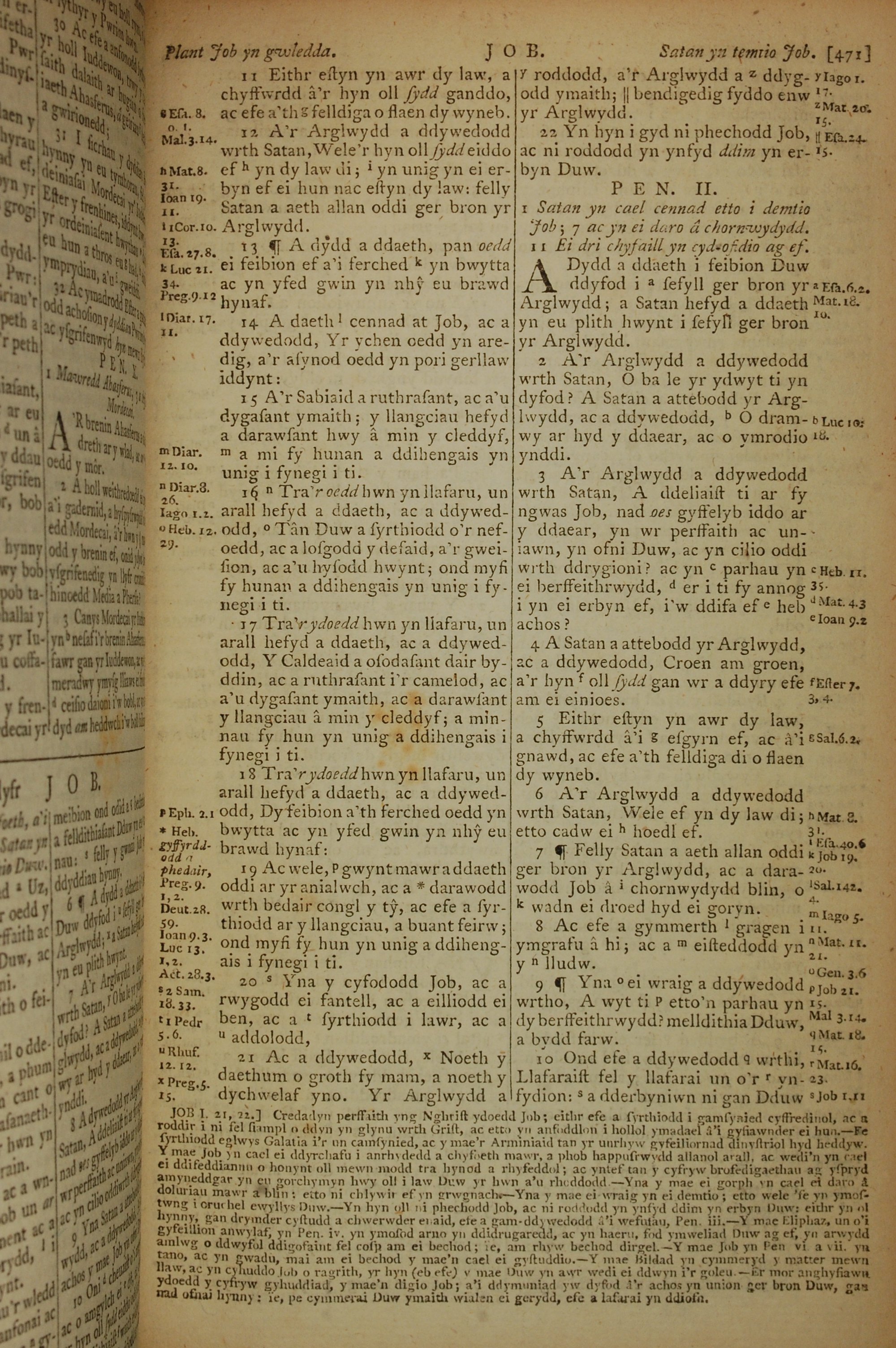 1796年威爾斯文新舊約全書 約伯記 1 章 11 節到 2 章 10 節