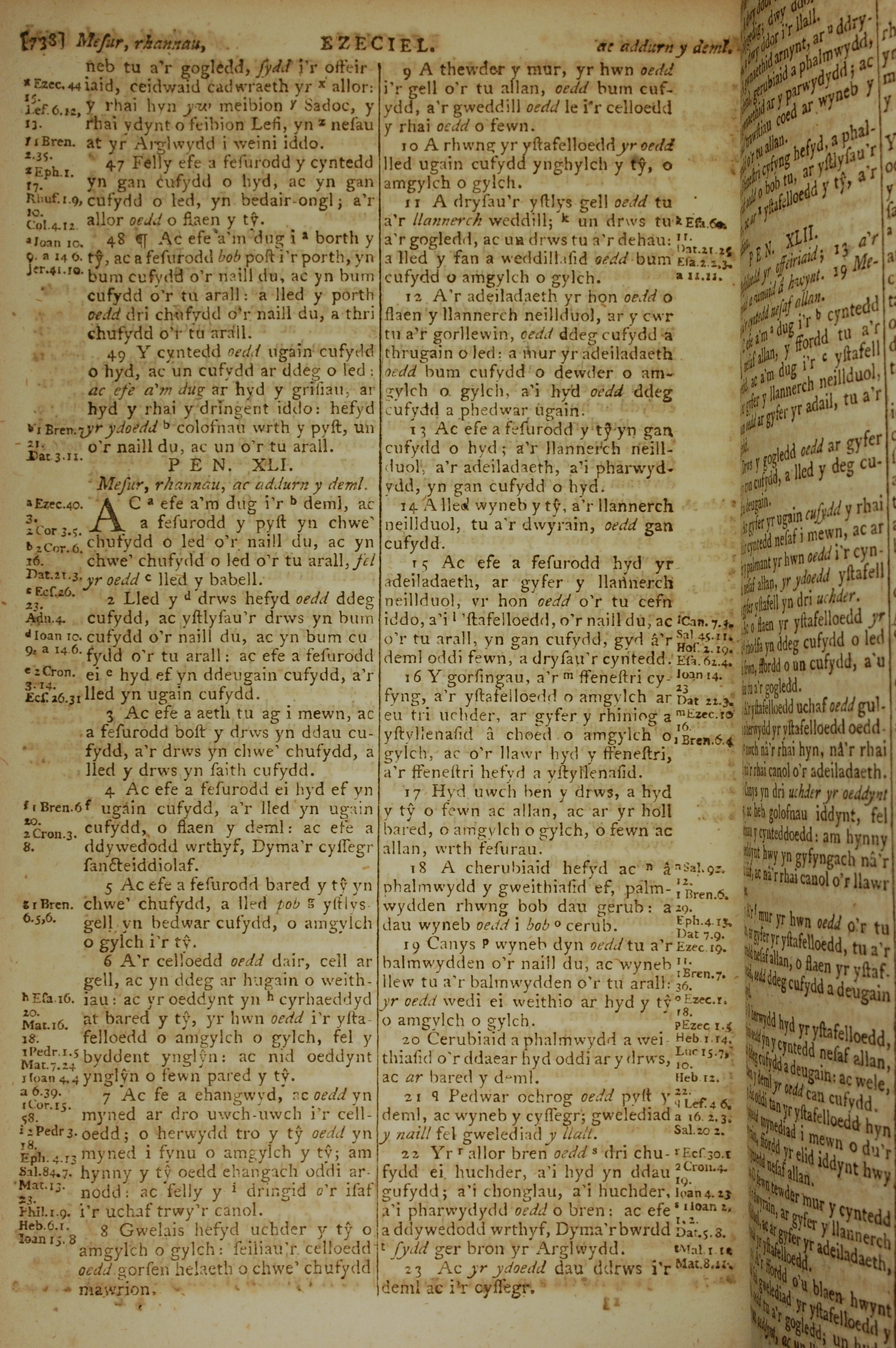 1796年威爾斯文新舊約全書 以西結書 40 章 47 節到 41 章 23 節