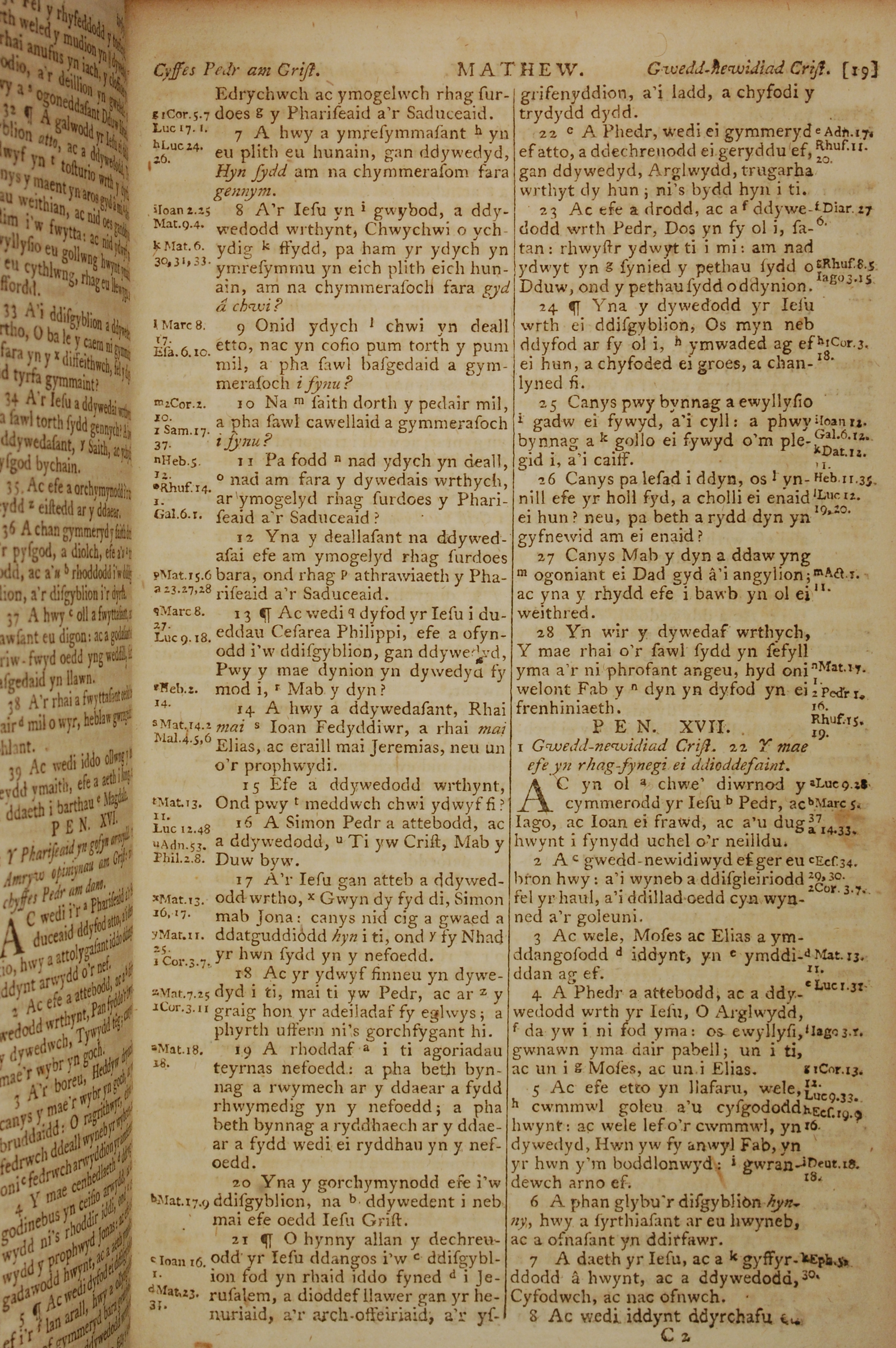 1796年威爾斯文新舊約全書 馬太福音 16 章 7 節到 17 章 8 節
