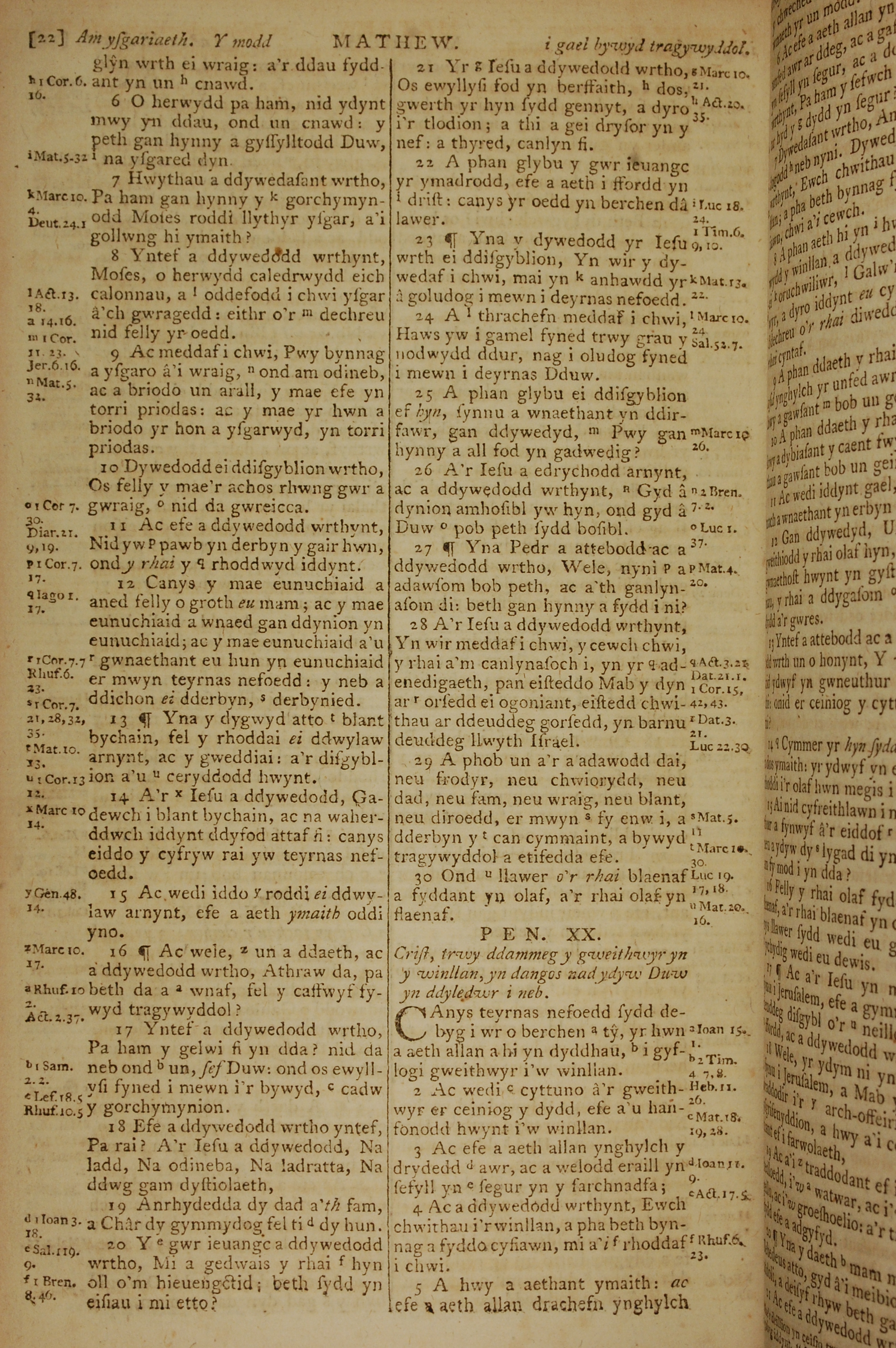 1796年威爾斯文新舊約全書 馬太福音 19 章 6 節到 20 章 5 節