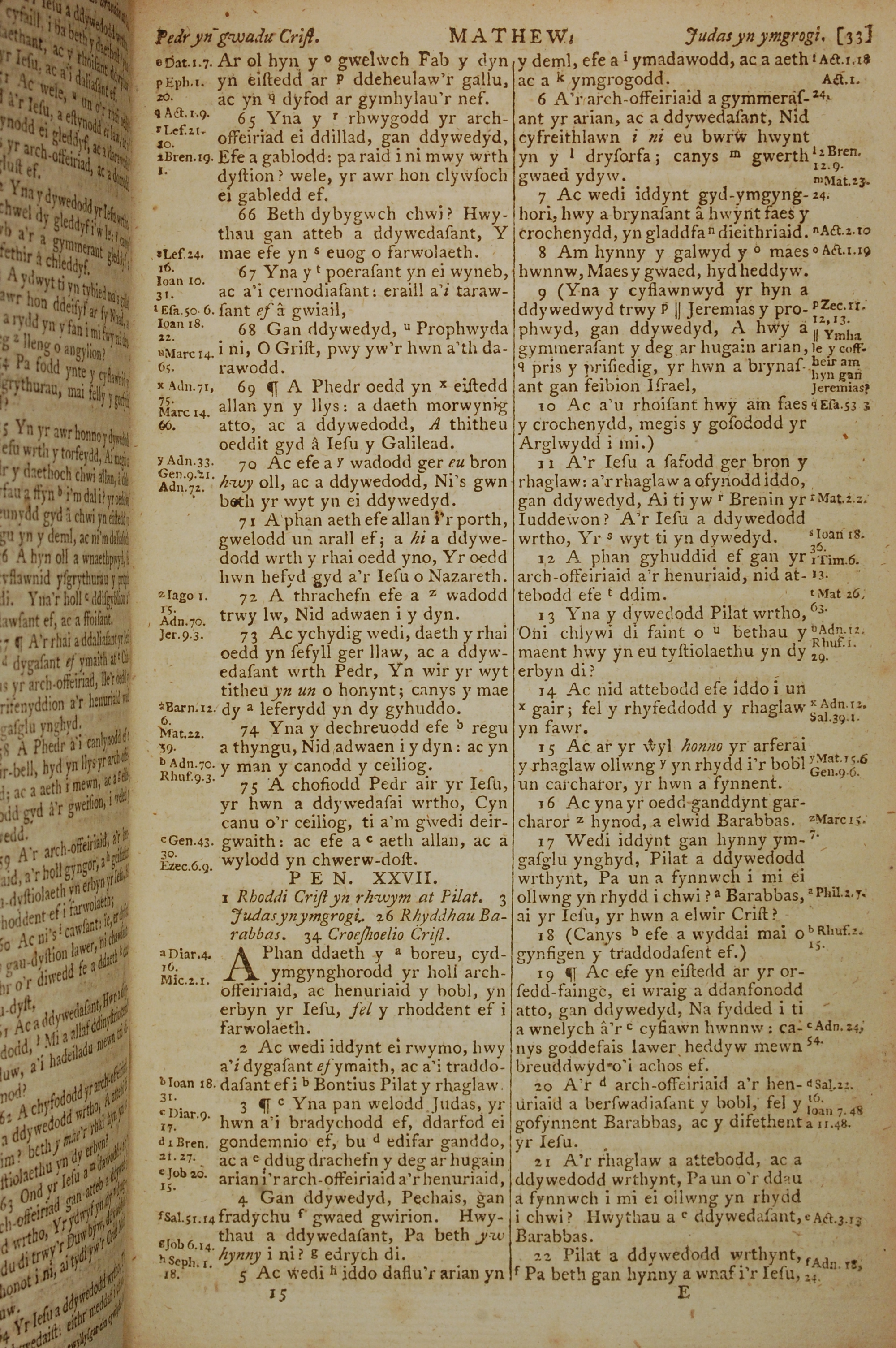 1796年威爾斯文新舊約全書 馬太福音 26 章 65 節到 27 章 22 節