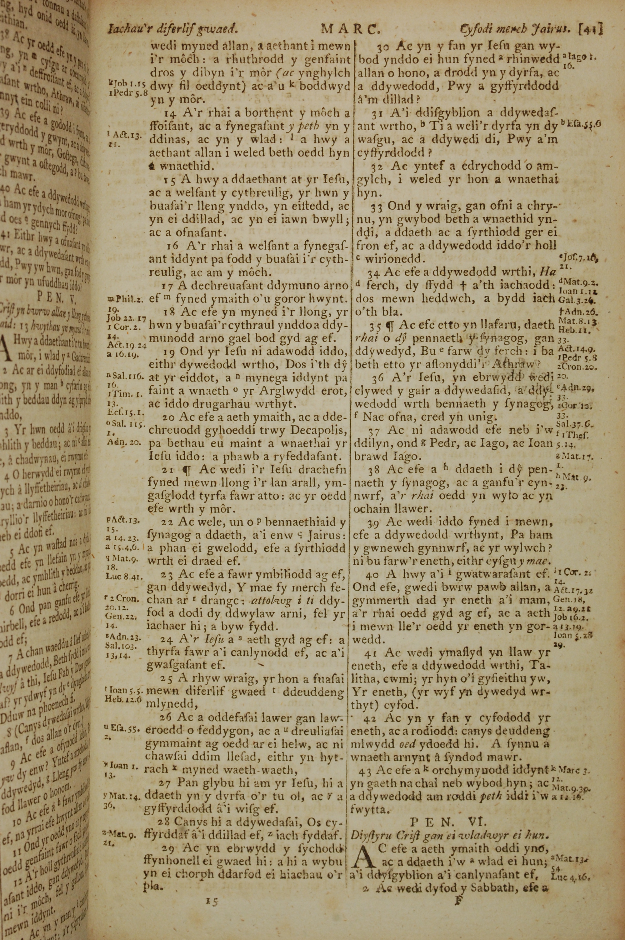 1796年威爾斯文新舊約全書 馬可福音 5 章 14 節到 6 章 1 節