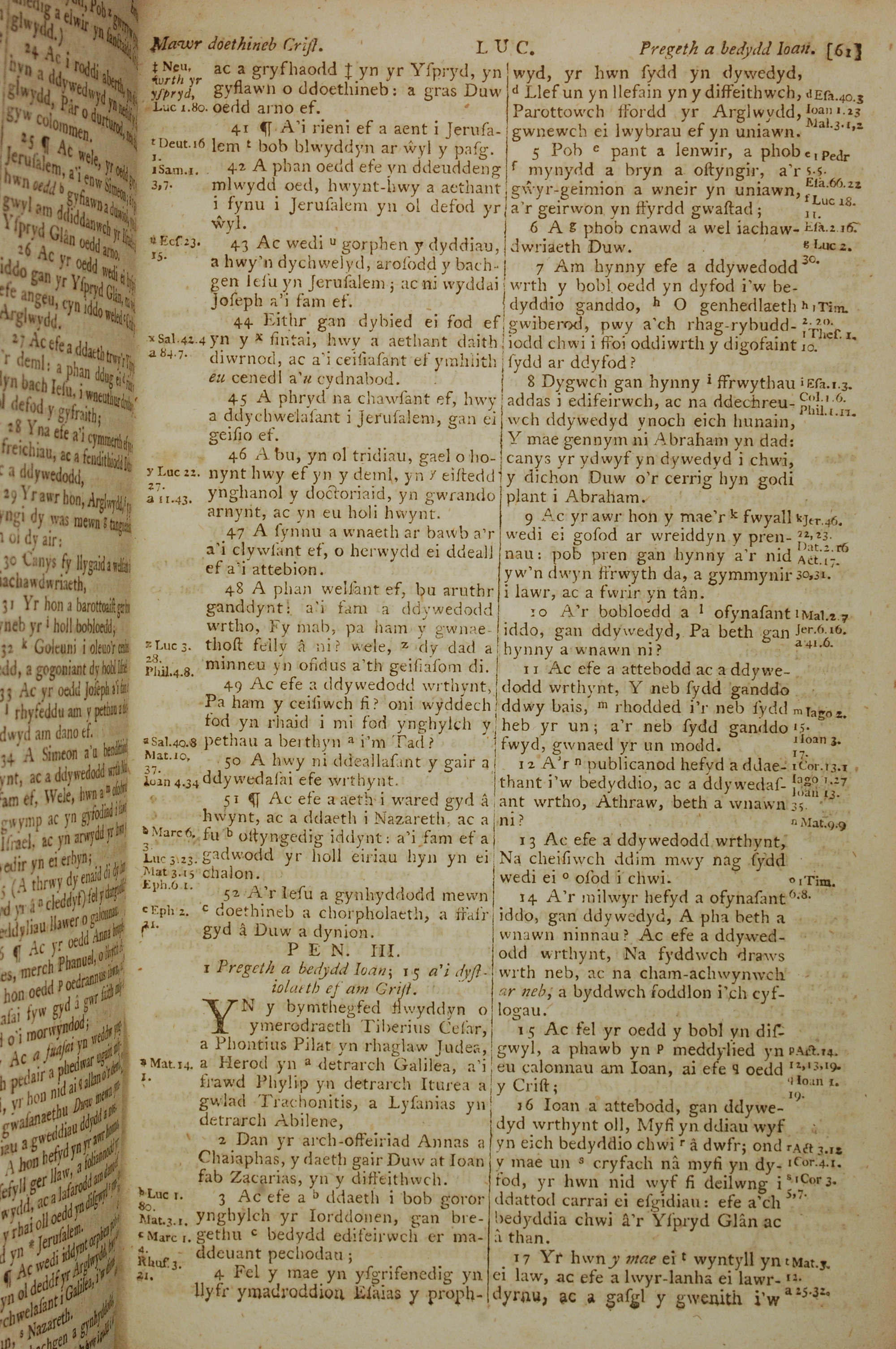 1796年威爾斯文新舊約全書 路加福音 2 章 41 節到 3 章 17 節