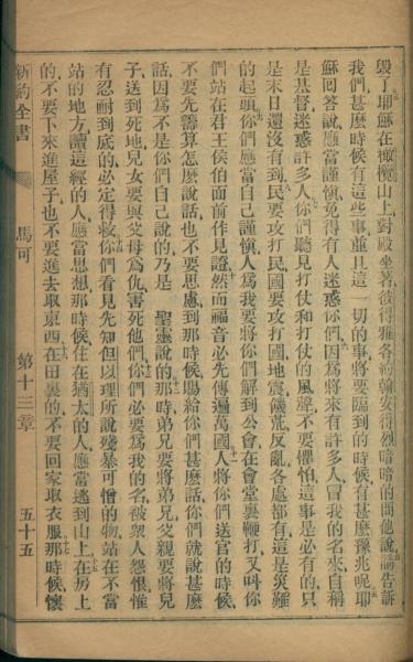 1872年官話新約全書 馬可福音 13 章 3 節到 13 章 17 節