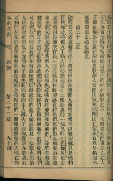 1872年官話新約全書 路加福音 21 章 35 節到 22 章 12 節