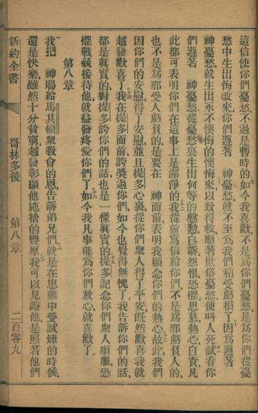1872年官話新約全書 哥林多後書 7 章 9 節到 8 章 3 節