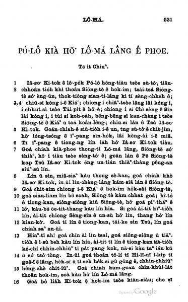 1898年新約全書 羅馬書 1 章 1 節到 1 章 16 節