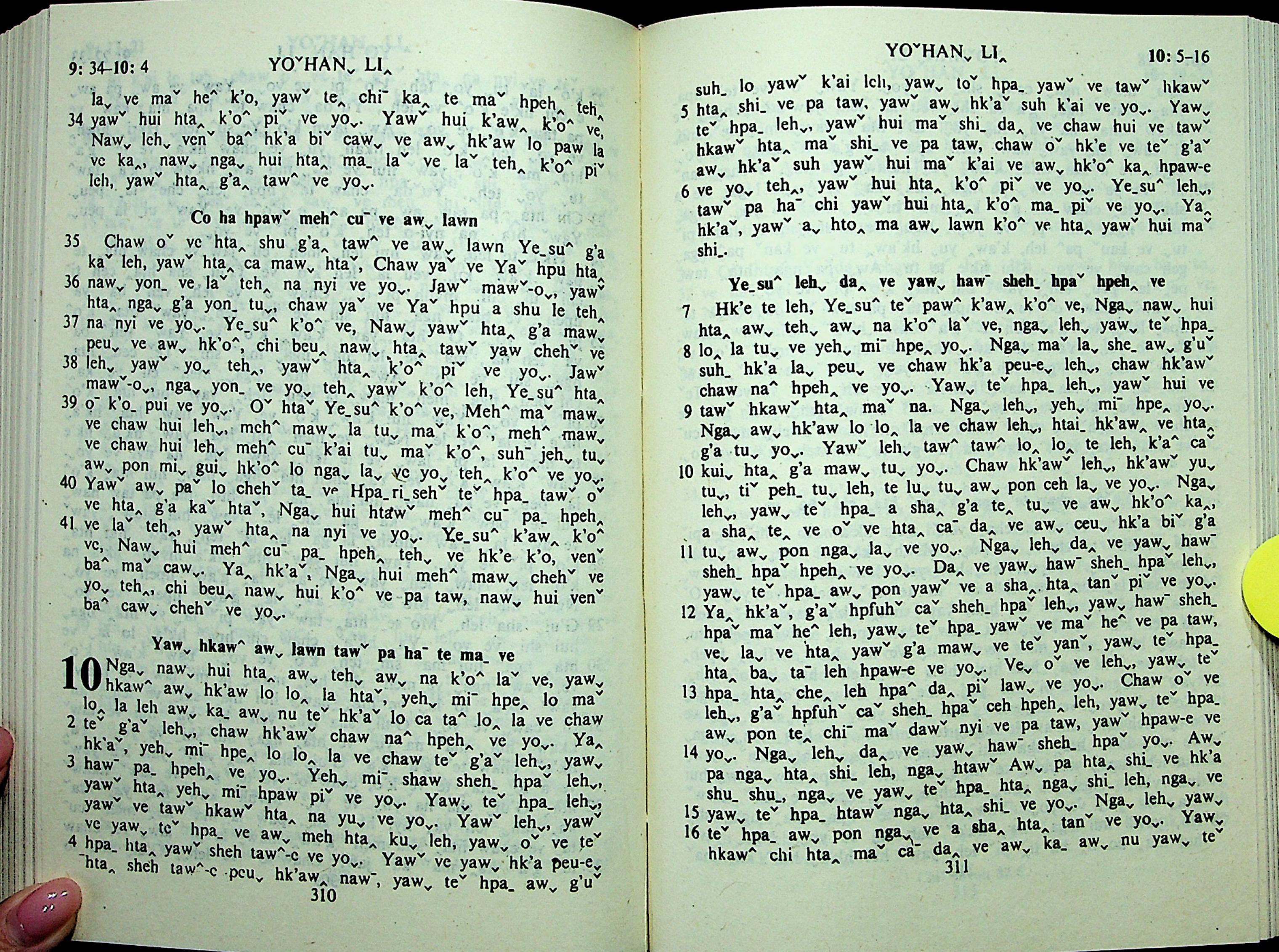 1985年拉祜文新約全書 約翰福音 9 章 34 節到 10 章 16 節