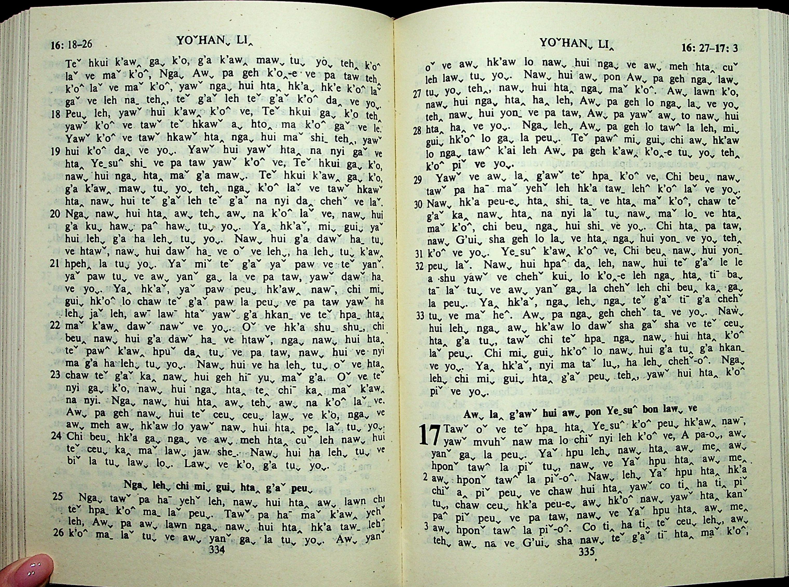 1985年拉祜文新約全書 約翰福音 16 章 18 節到 17 章 3 節
