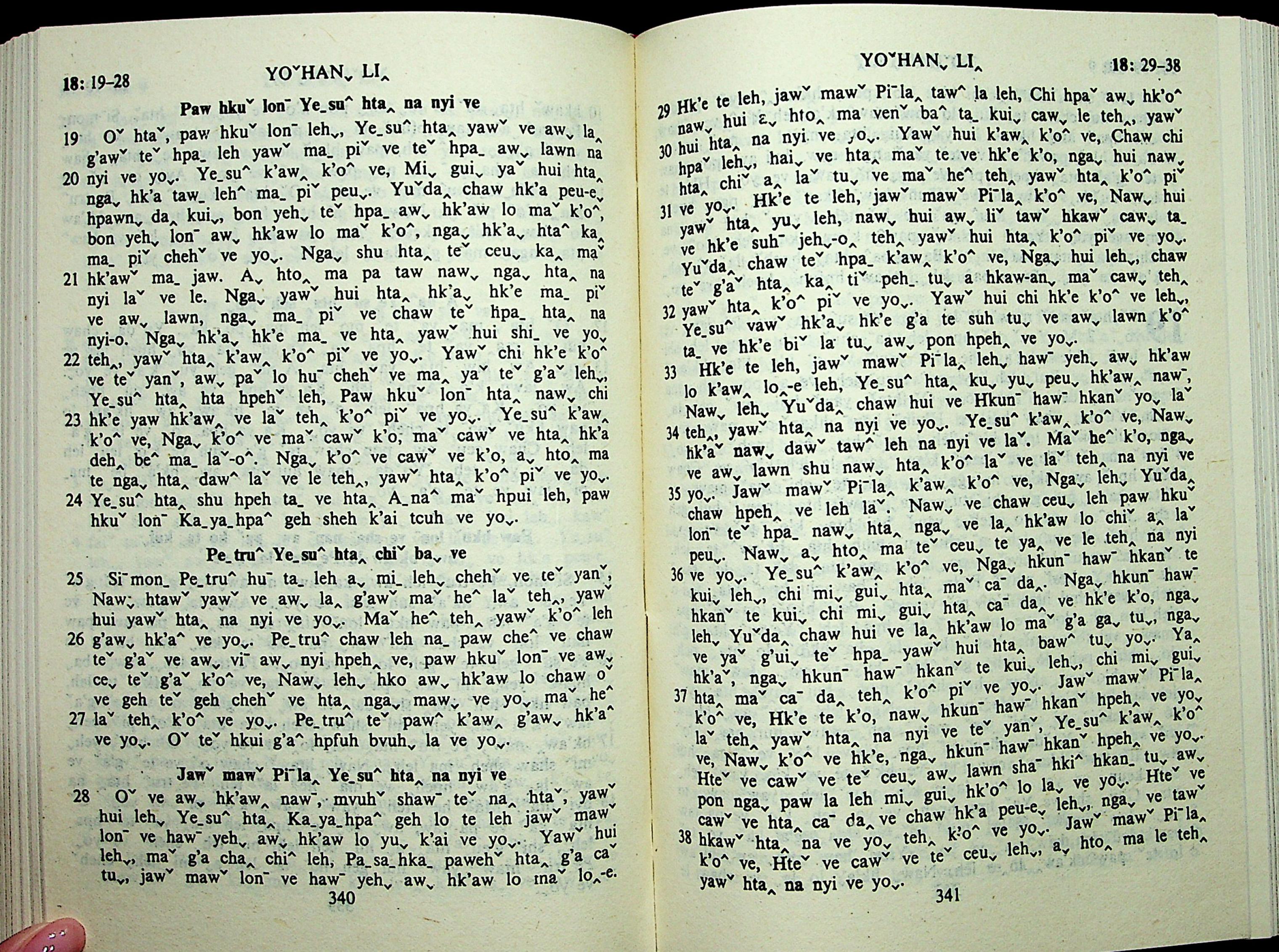 1985年拉祜文新約全書 約翰福音 18 章 19 節到 18 章 38 節