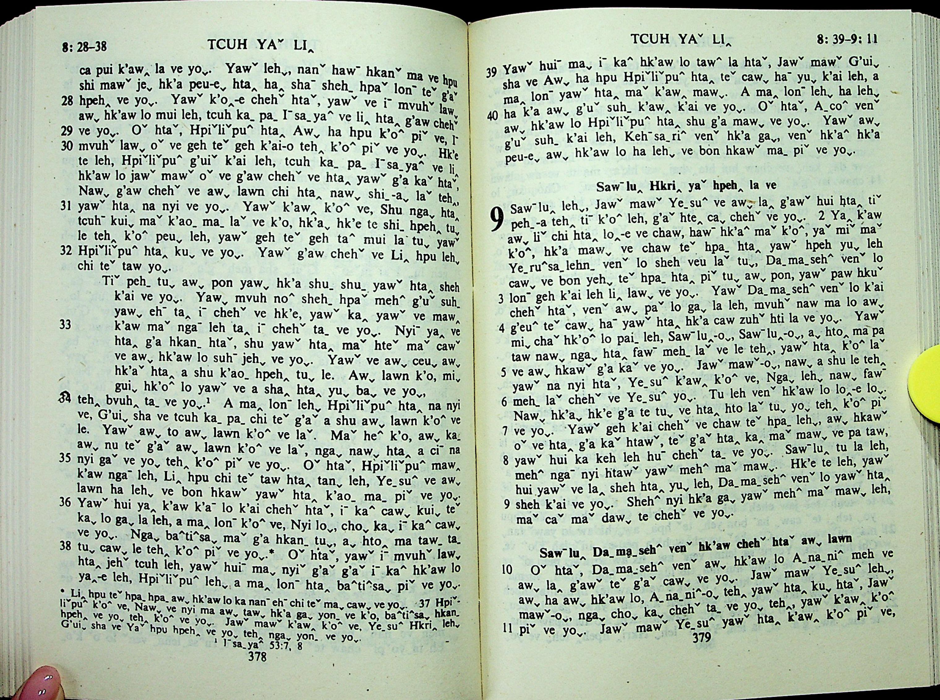 1985年拉祜文新約全書 使徒行傳 8 章 28 節到 9 章 11 節