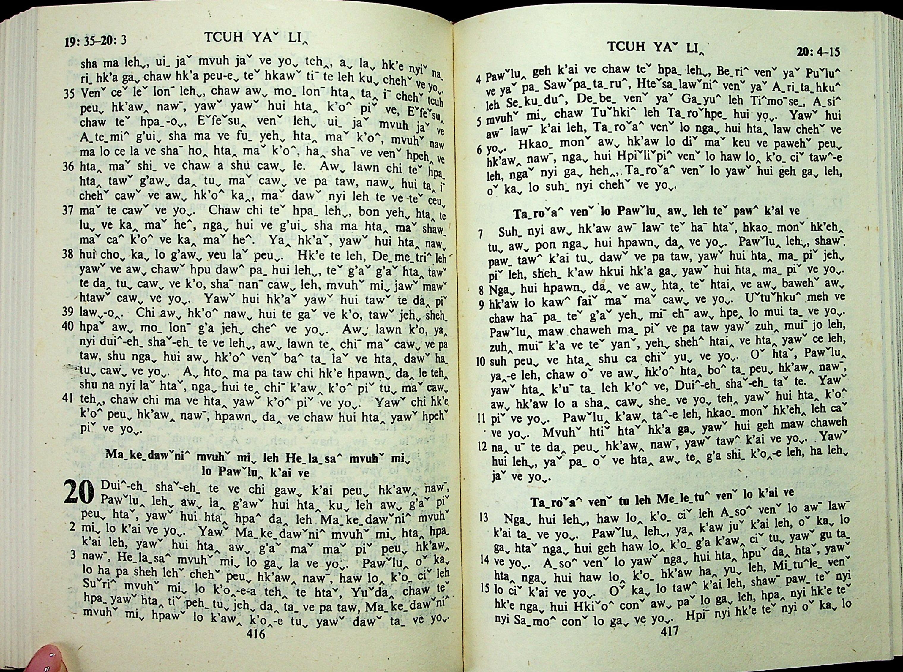 1985年拉祜文新約全書 使徒行傳 19 章 35 節到 20 章 15 節