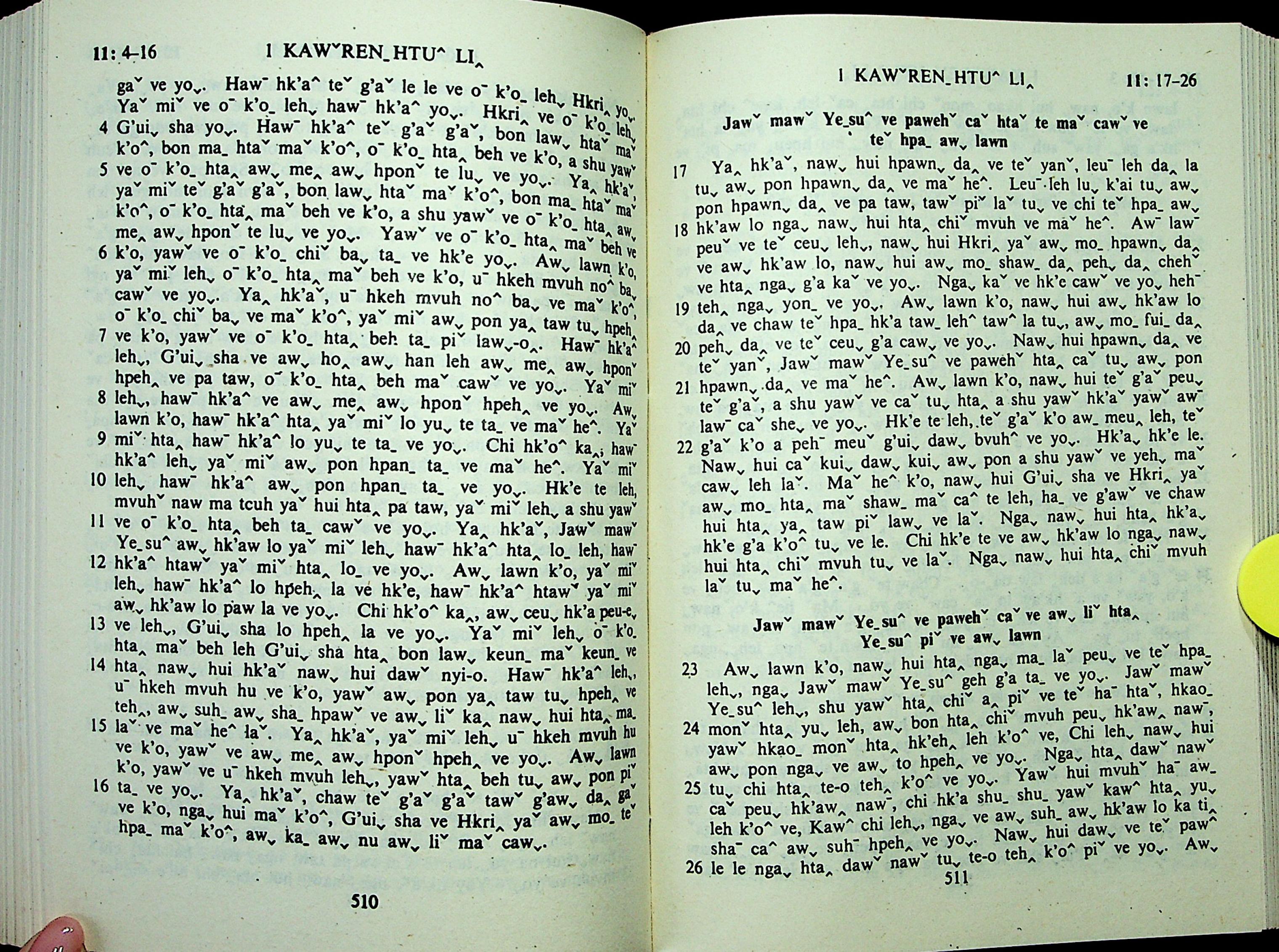 1985年拉祜文新約全書 哥林多前書 11 章 4 節到 11 章 26 節