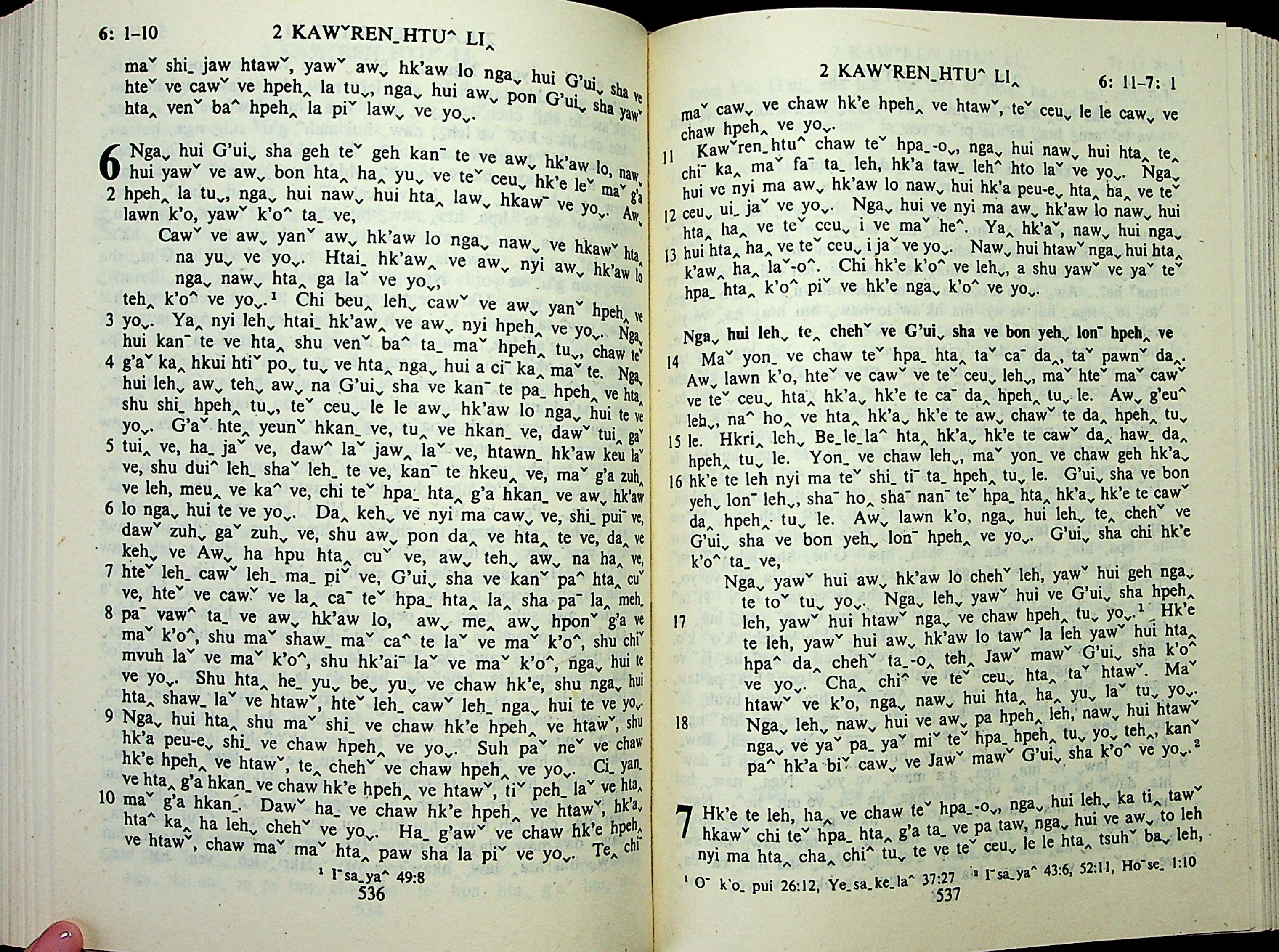 1985年拉祜文新約全書 哥林多後書 6 章 1 節到 7 章 1 節