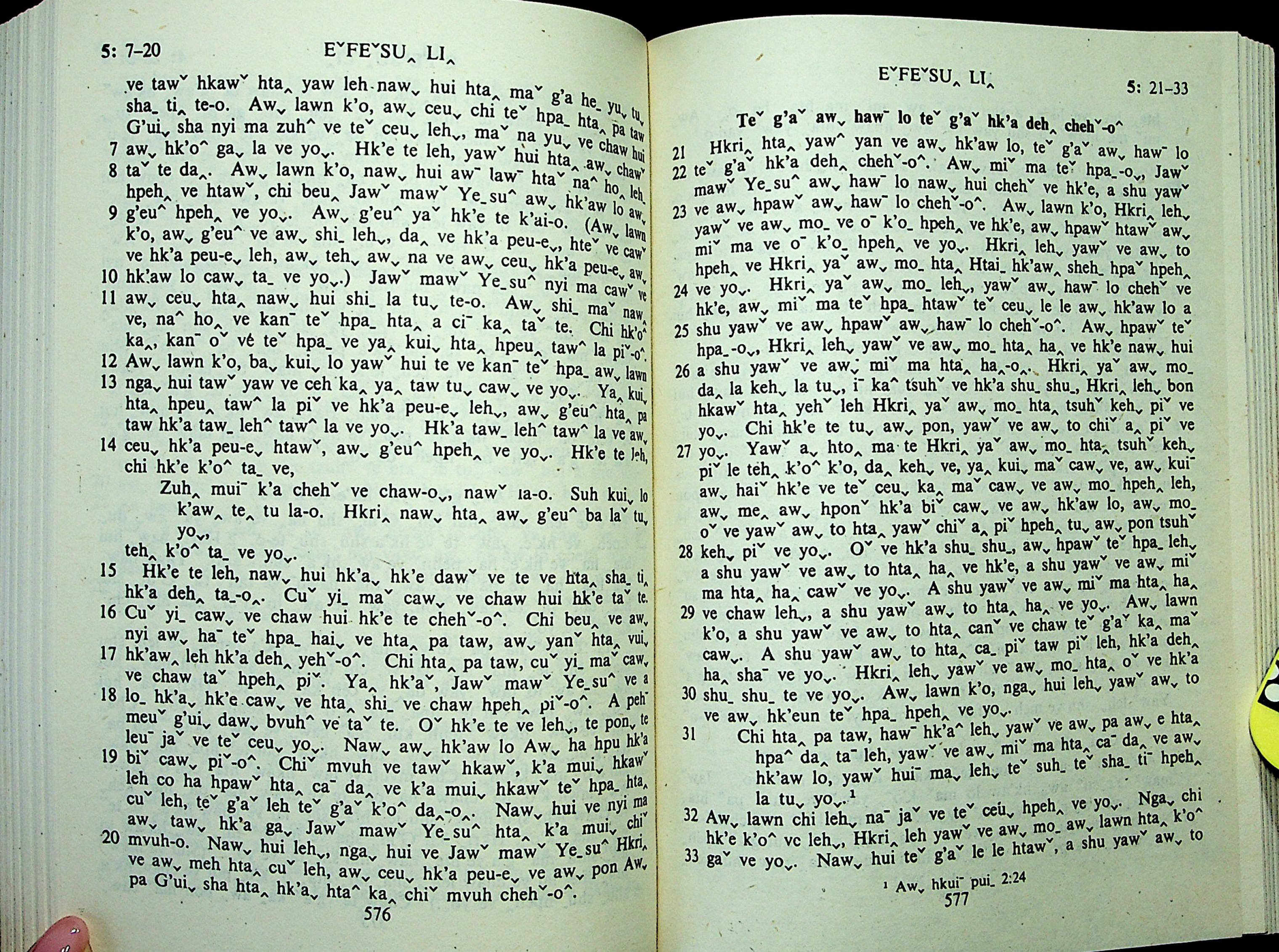 1985年拉祜文新約全書 以弗所書 5 章 7 節到 5 章 33 節