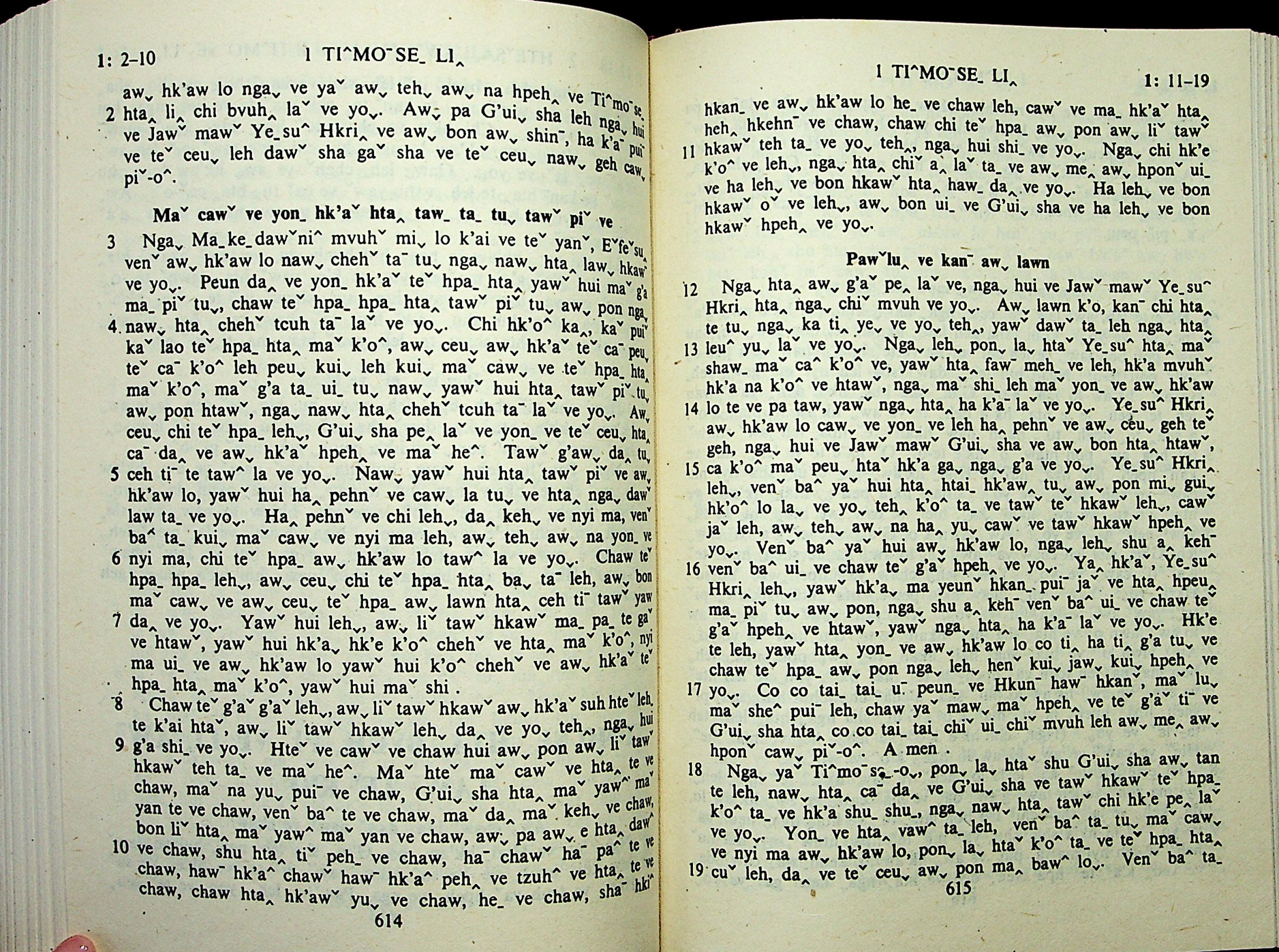 1985年拉祜文新約全書 提摩太前書 1 章 2 節到 1 章 19 節