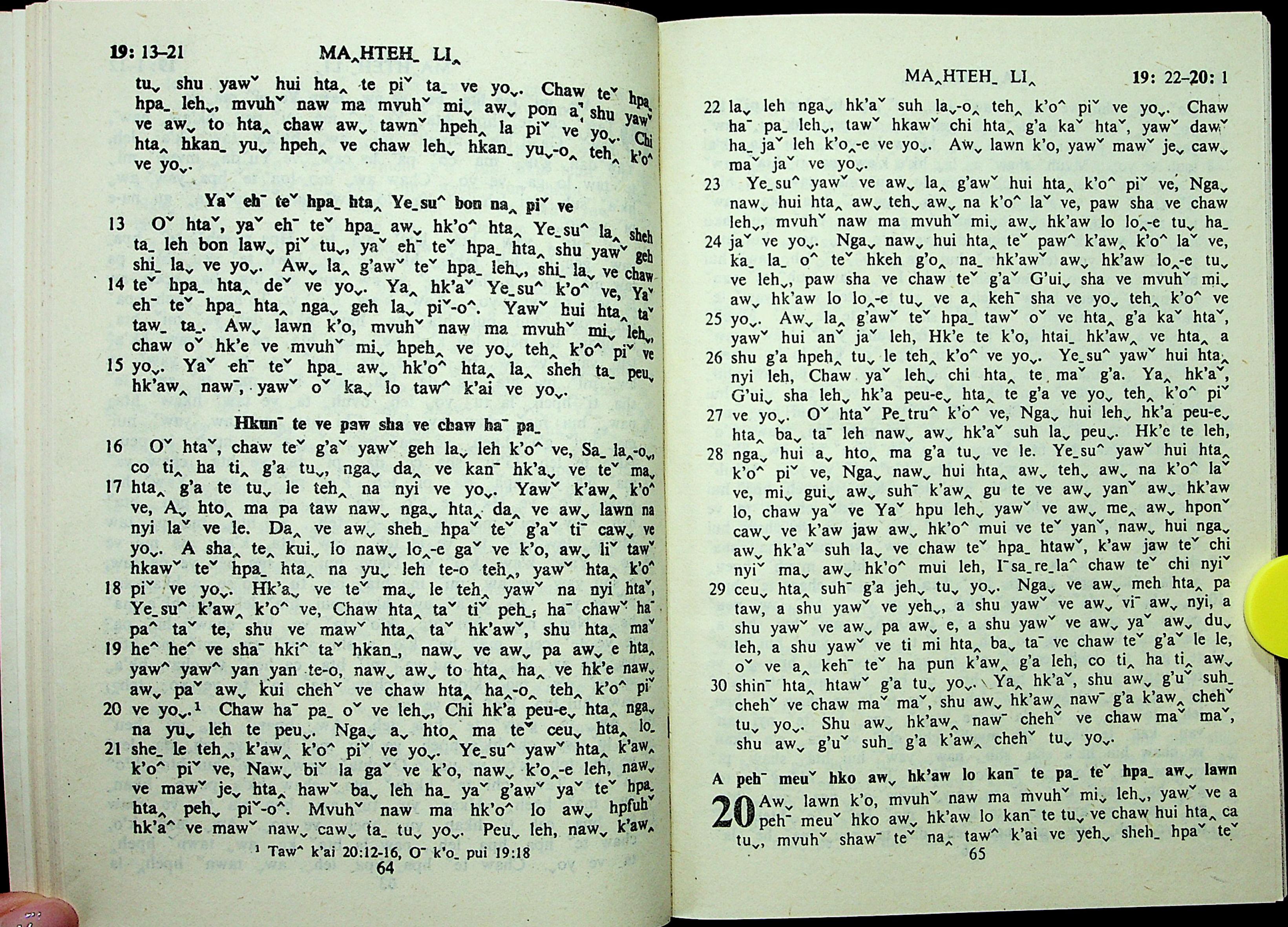 1985年拉祜文新約全書 馬太福音 19 章 13 節到 20 章 1 節
