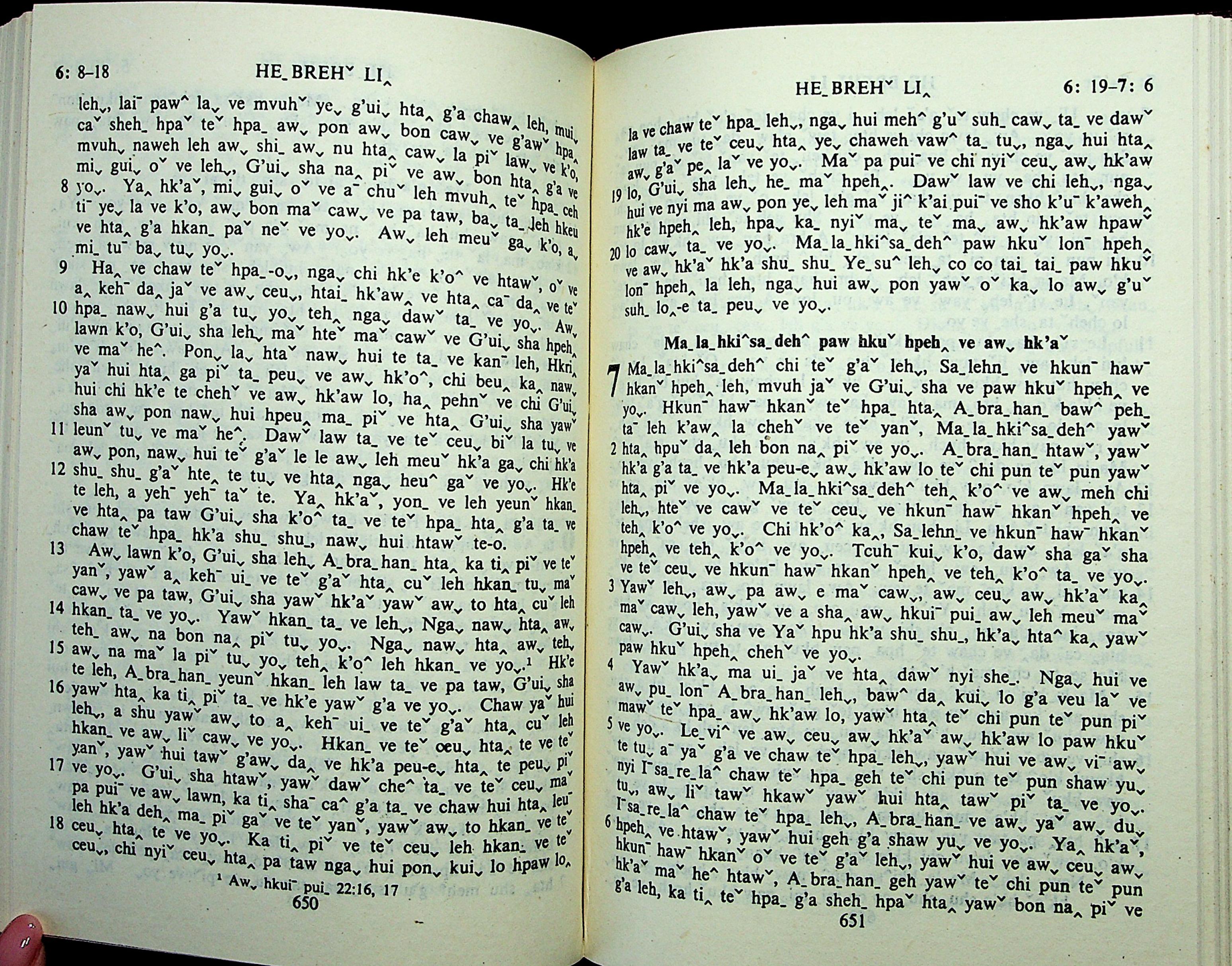 1985年拉祜文新約全書 希伯來書 6 章 8 節到 7 章 6 節