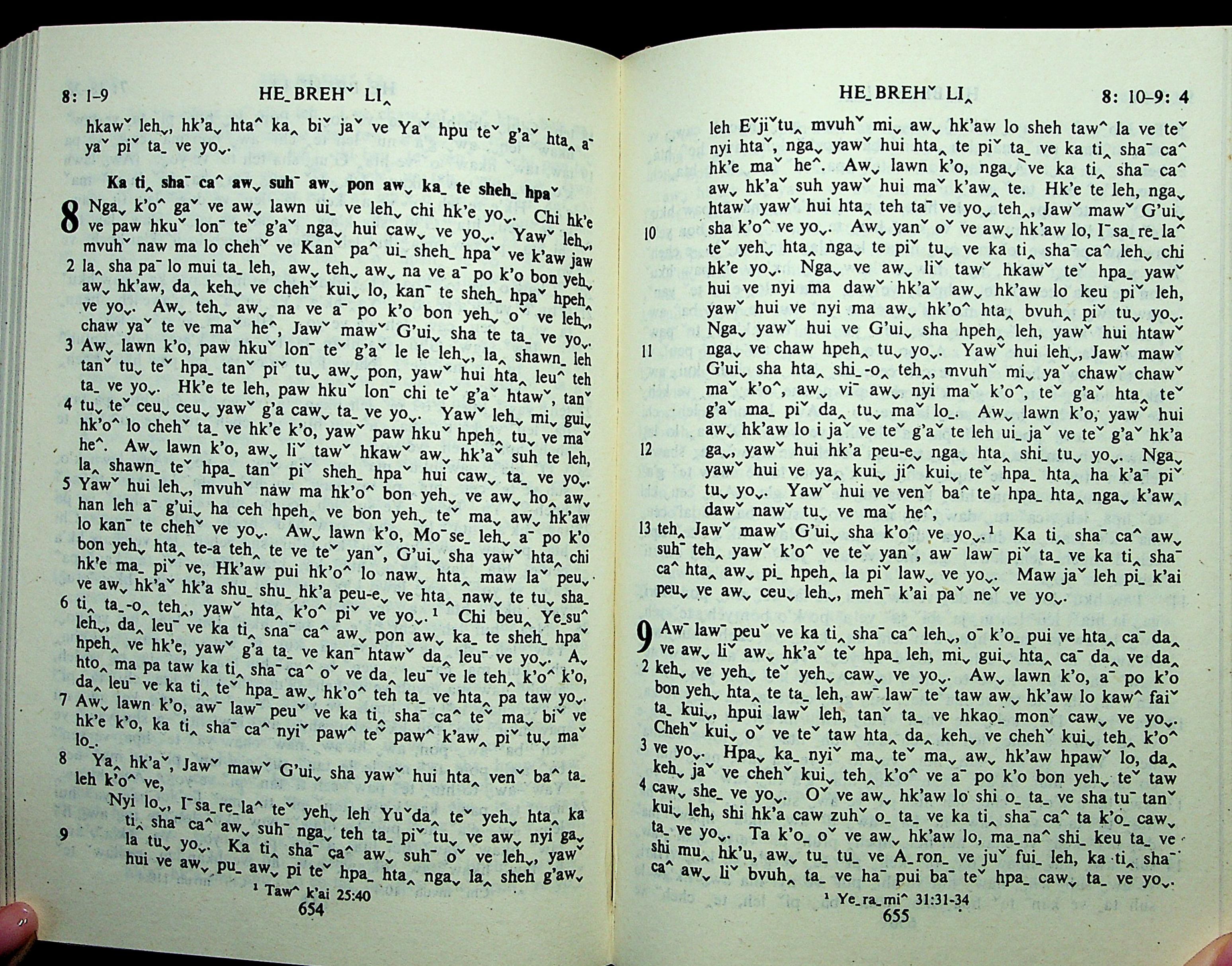 1985年拉祜文新約全書 希伯來書 8 章 1 節到 9 章 4 節
