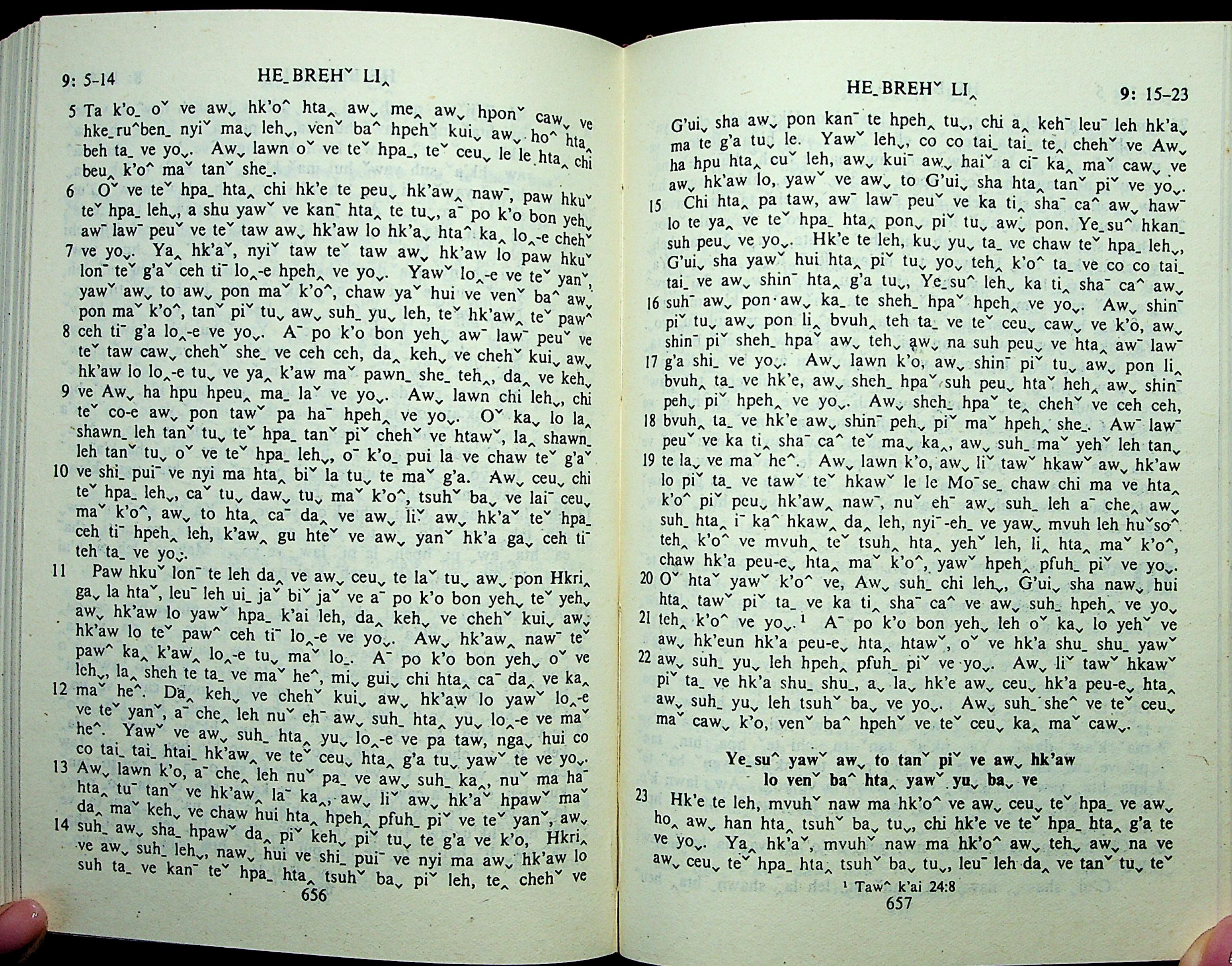 1985年拉祜文新約全書 希伯來書 9 章 5 節到 9 章 23 節