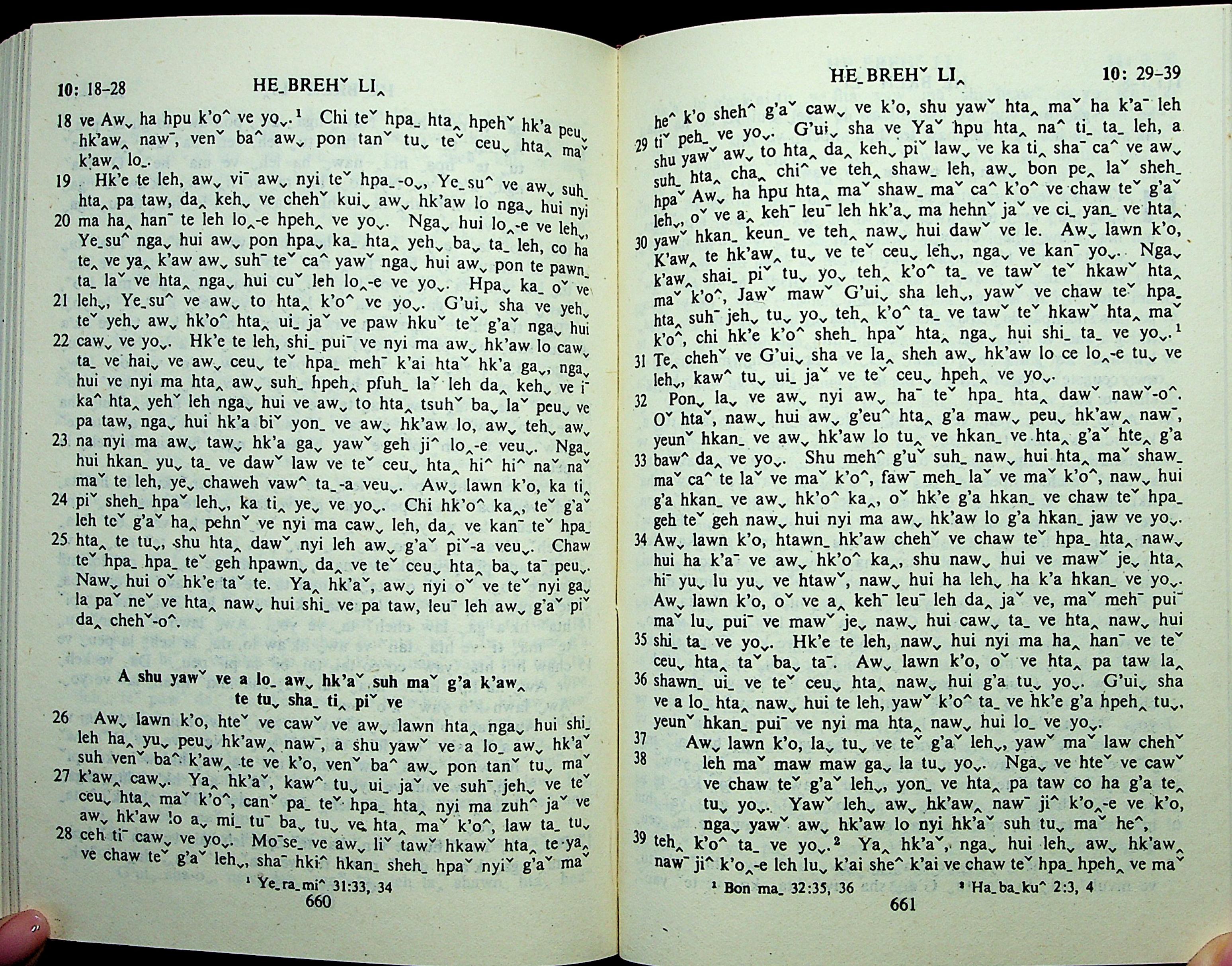 1985年拉祜文新約全書 希伯來書 10 章 18 節到 10 章 39 節