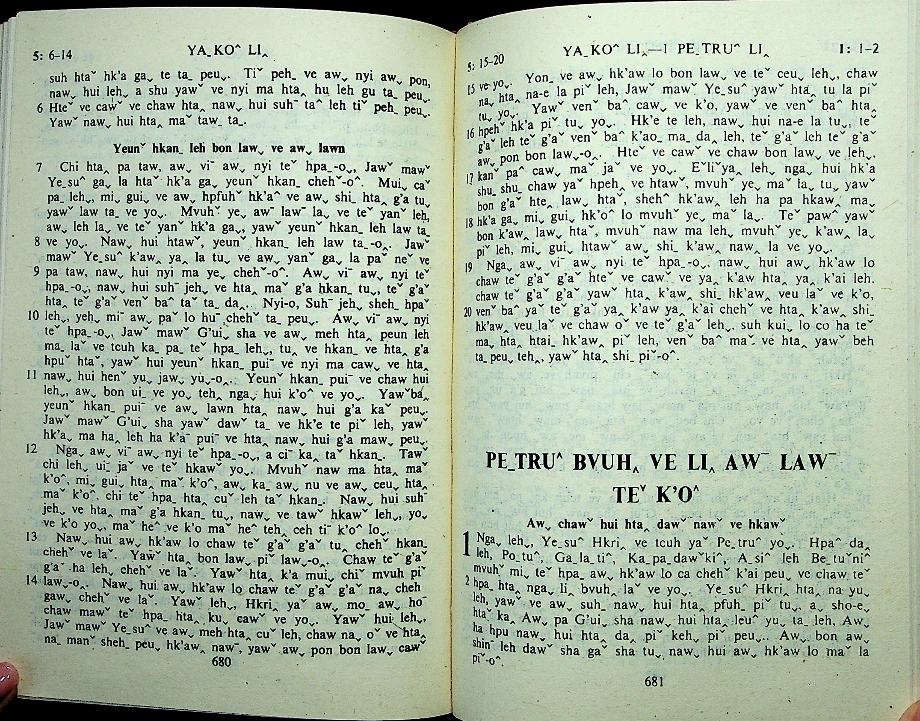 1985年拉祜文新約全書 彼得前書 1 章 1 節到 1 章 2 節