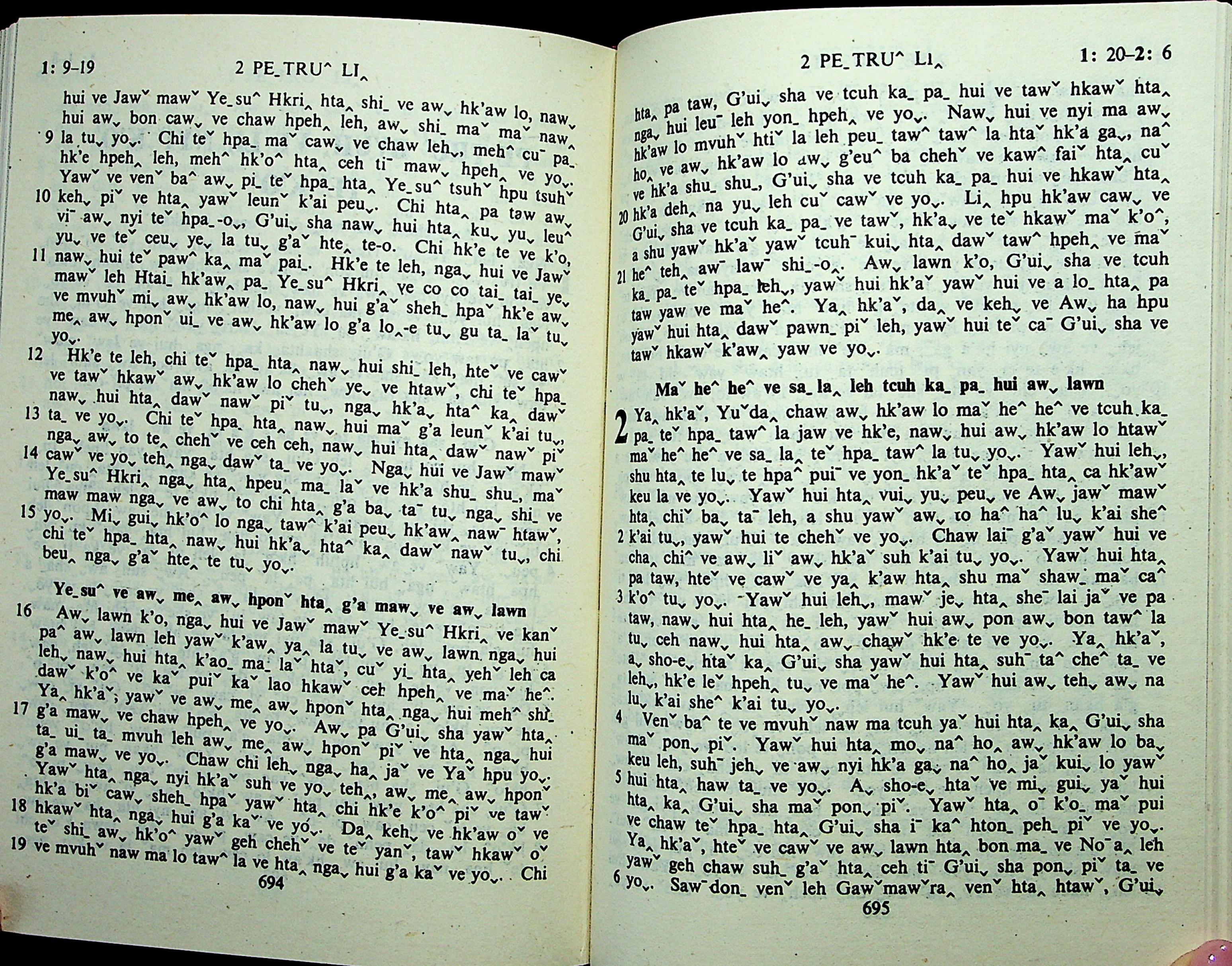 1985年拉祜文新約全書 彼得後書 1 章 9 節到 2 章 6 節