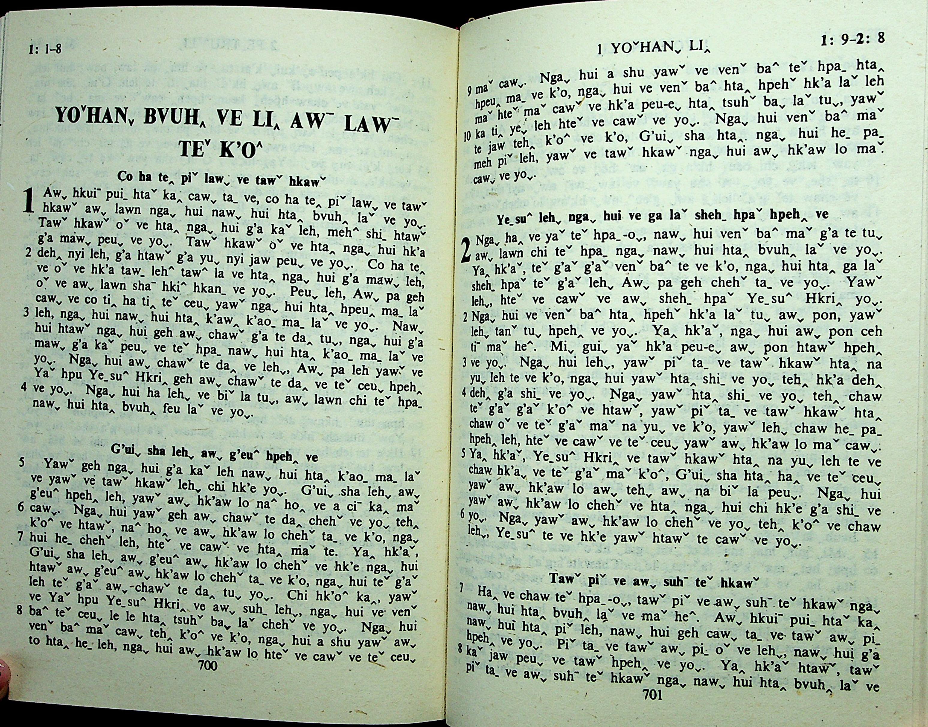 1985年拉祜文新約全書 約翰一書 1 章 1 節到 2 章 8 節