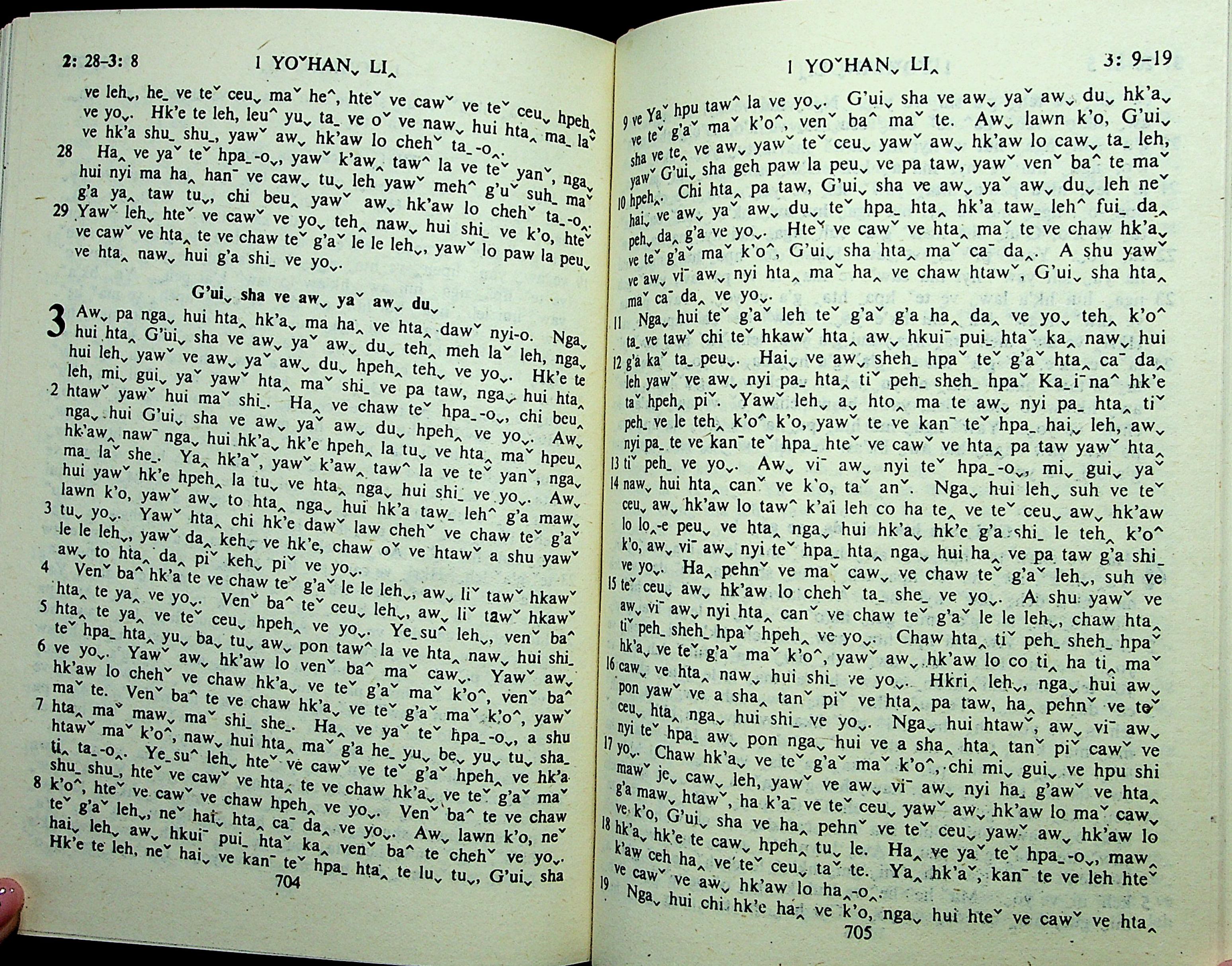 1985年拉祜文新約全書 約翰一書 2 章 28 節到 3 章 19 節