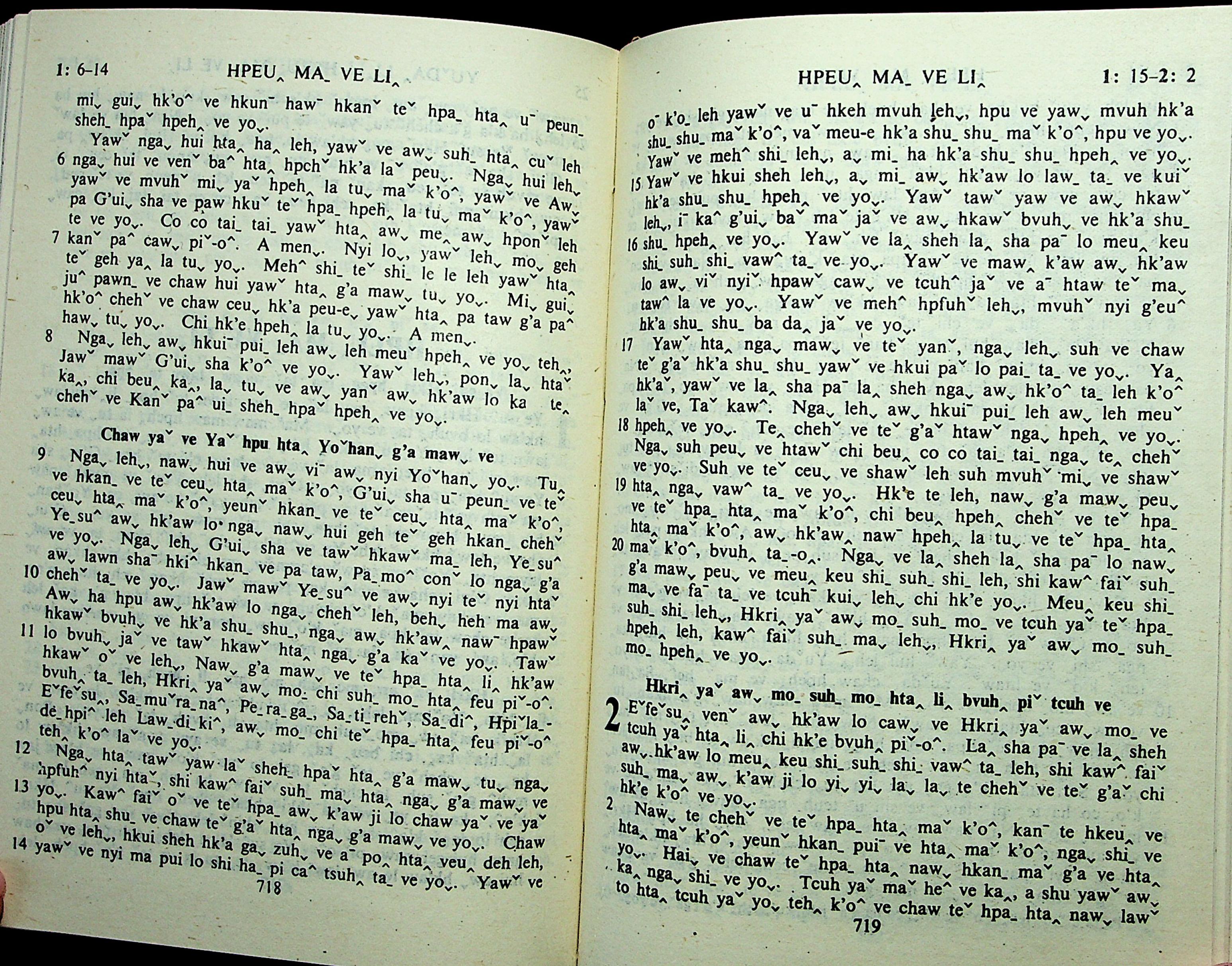 1985年拉祜文新約全書 啟示錄 1 章 6 節到 2 章 2 節