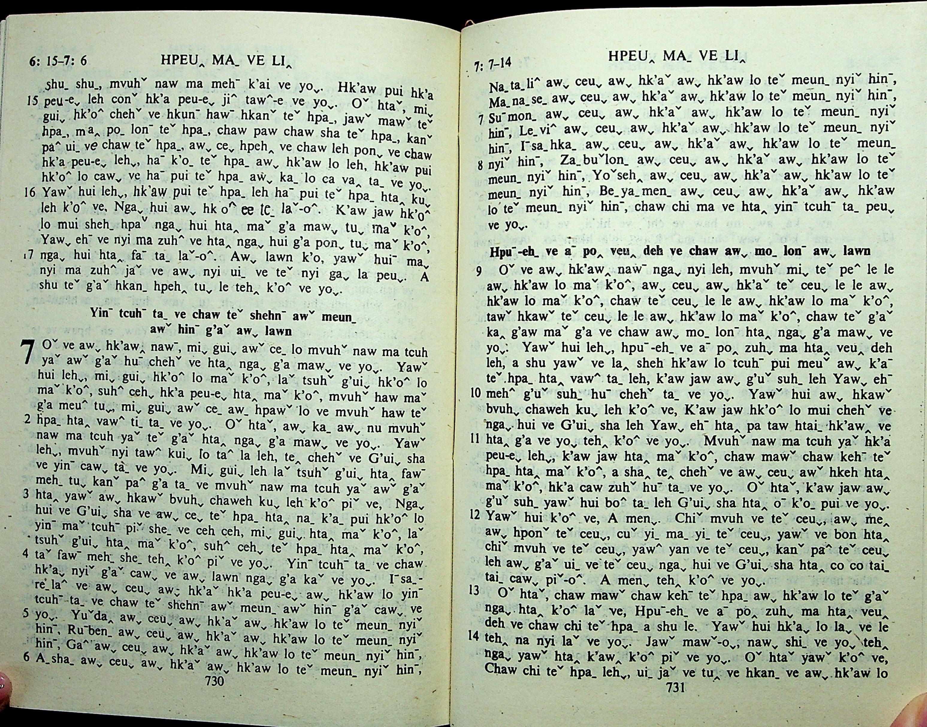 1985年拉祜文新約全書 啟示錄 6 章 15 節到 7 章 14 節