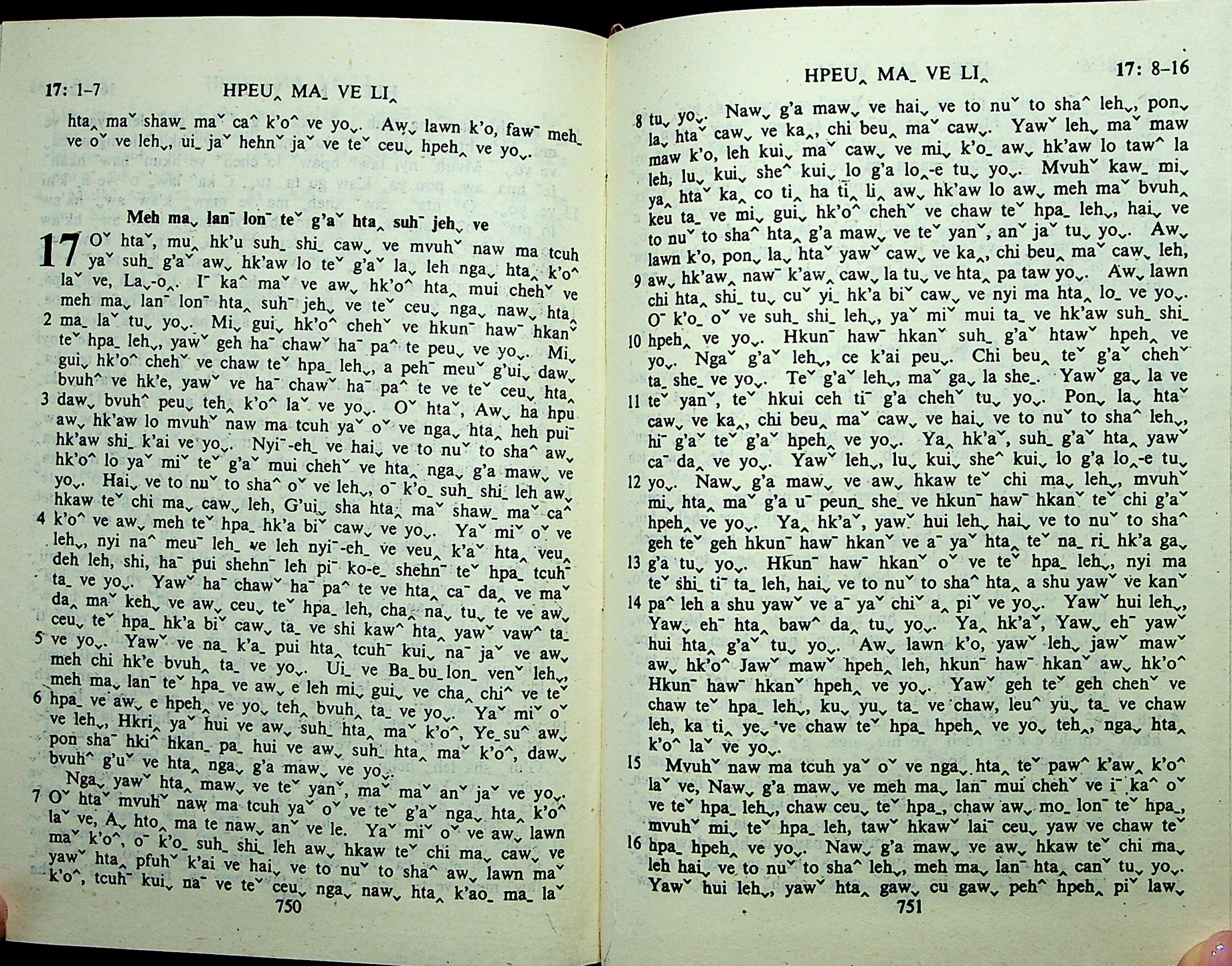 1985年拉祜文新約全書 啟示錄 17 章 1 節到 17 章 16 節