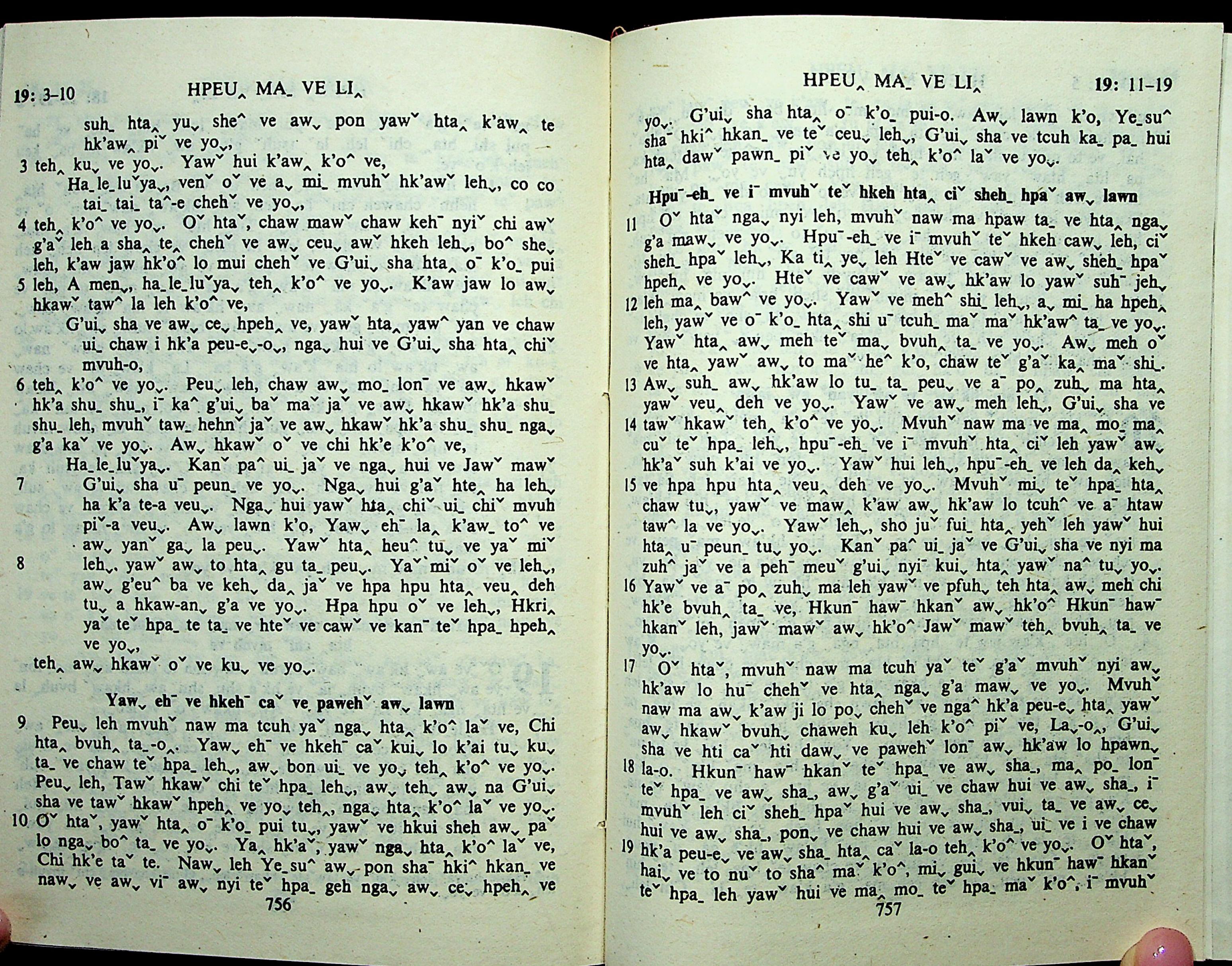 1985年拉祜文新約全書 啟示錄 19 章 3 節到 19 章 19 節