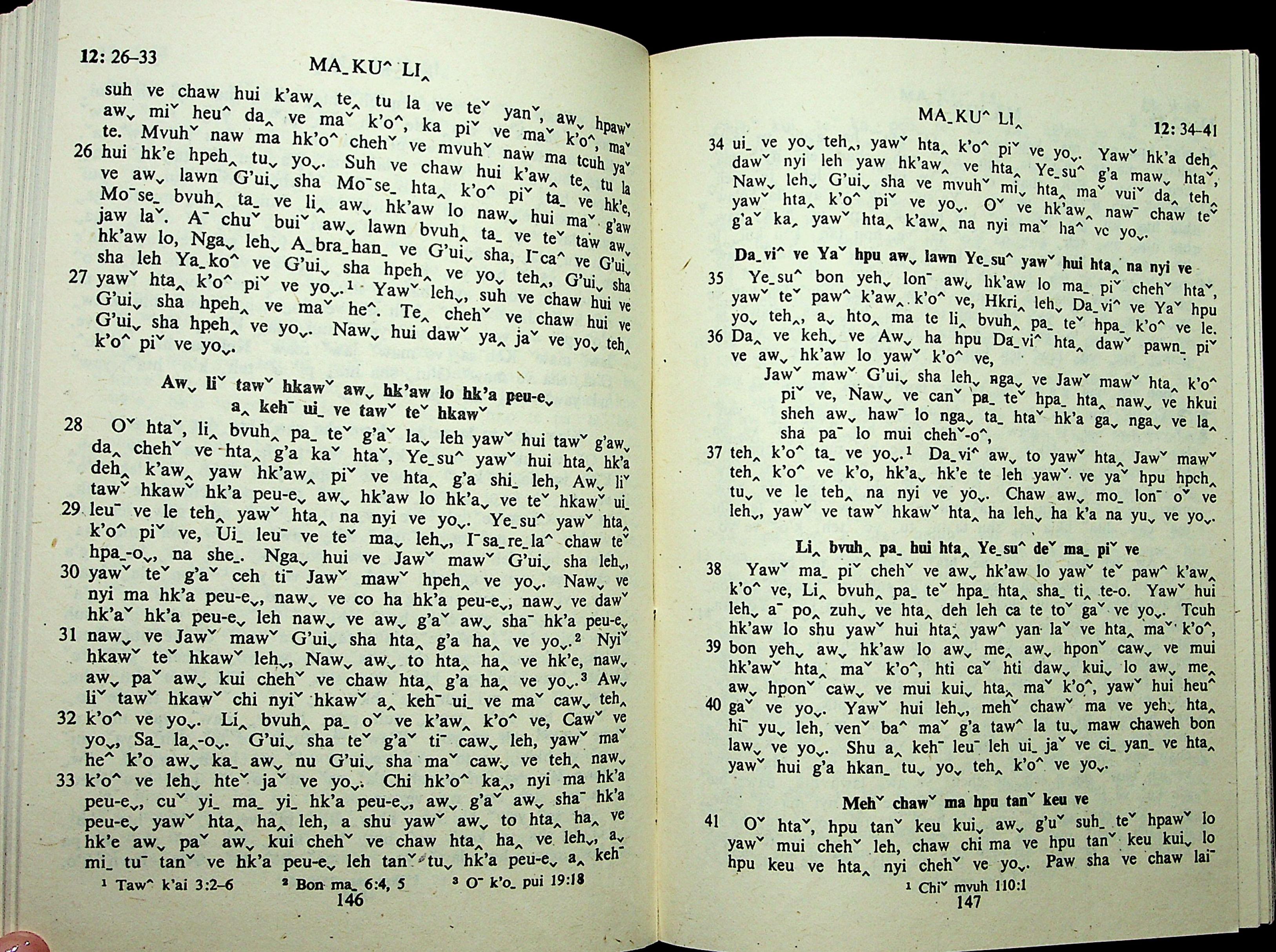 1985年拉祜文新約全書 馬可福音 12 章 26 節到 12 章 41 節