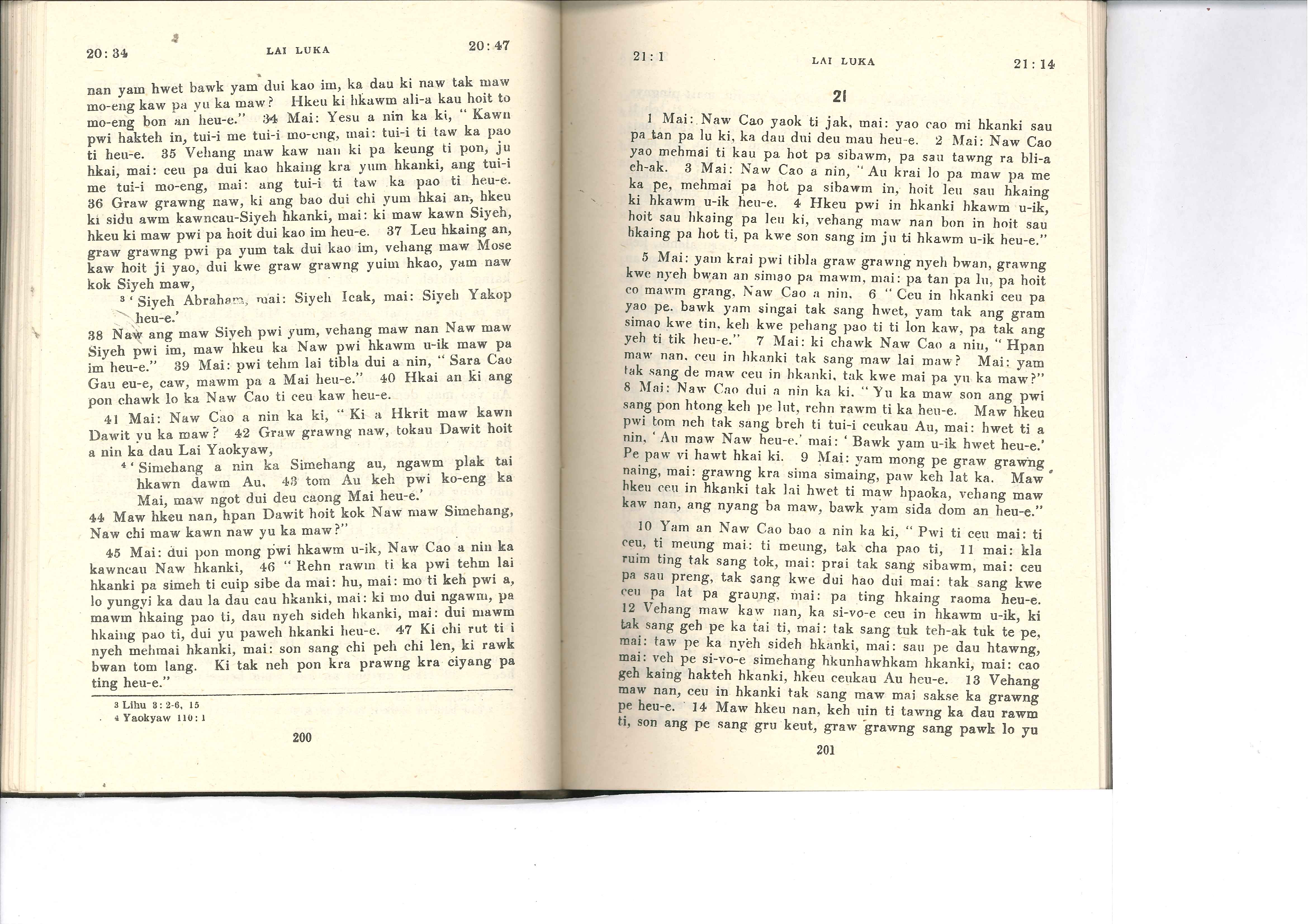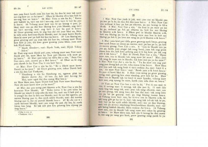 1985年佤文新約全書 路加福音 20 章 34 節到 21 章 14 節