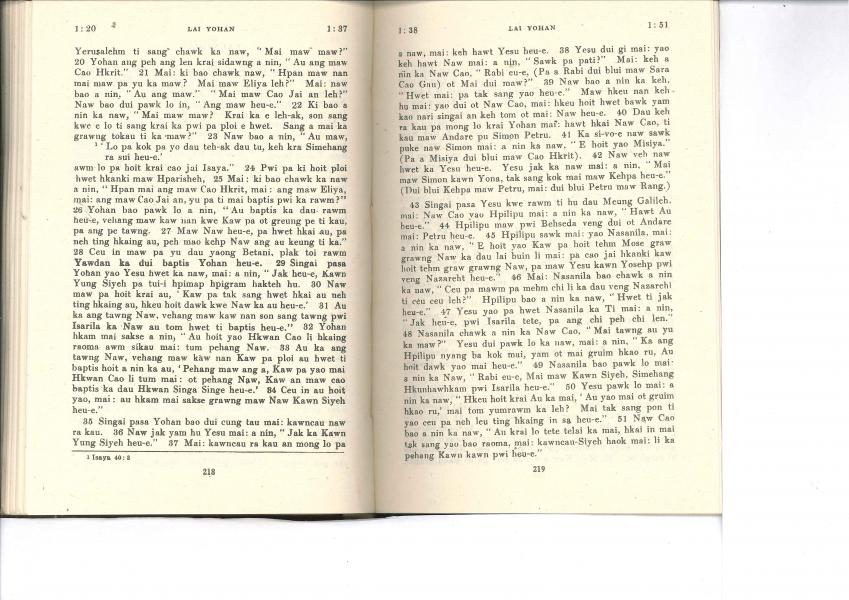 1985年佤文新約全書 約翰福音 1 章 20 節到 1 章 51 節
