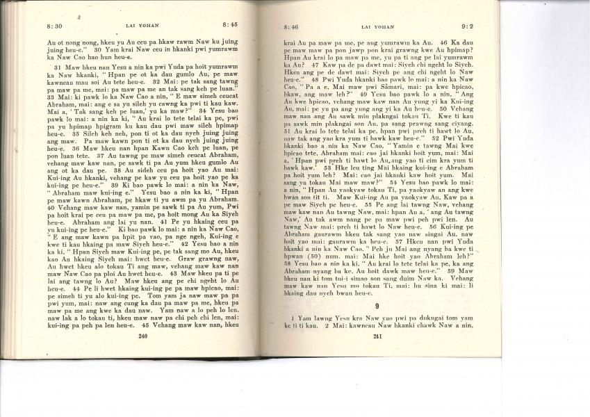 1985年佤文新約全書 約翰福音 8 章 30 節到 9 章 2 節