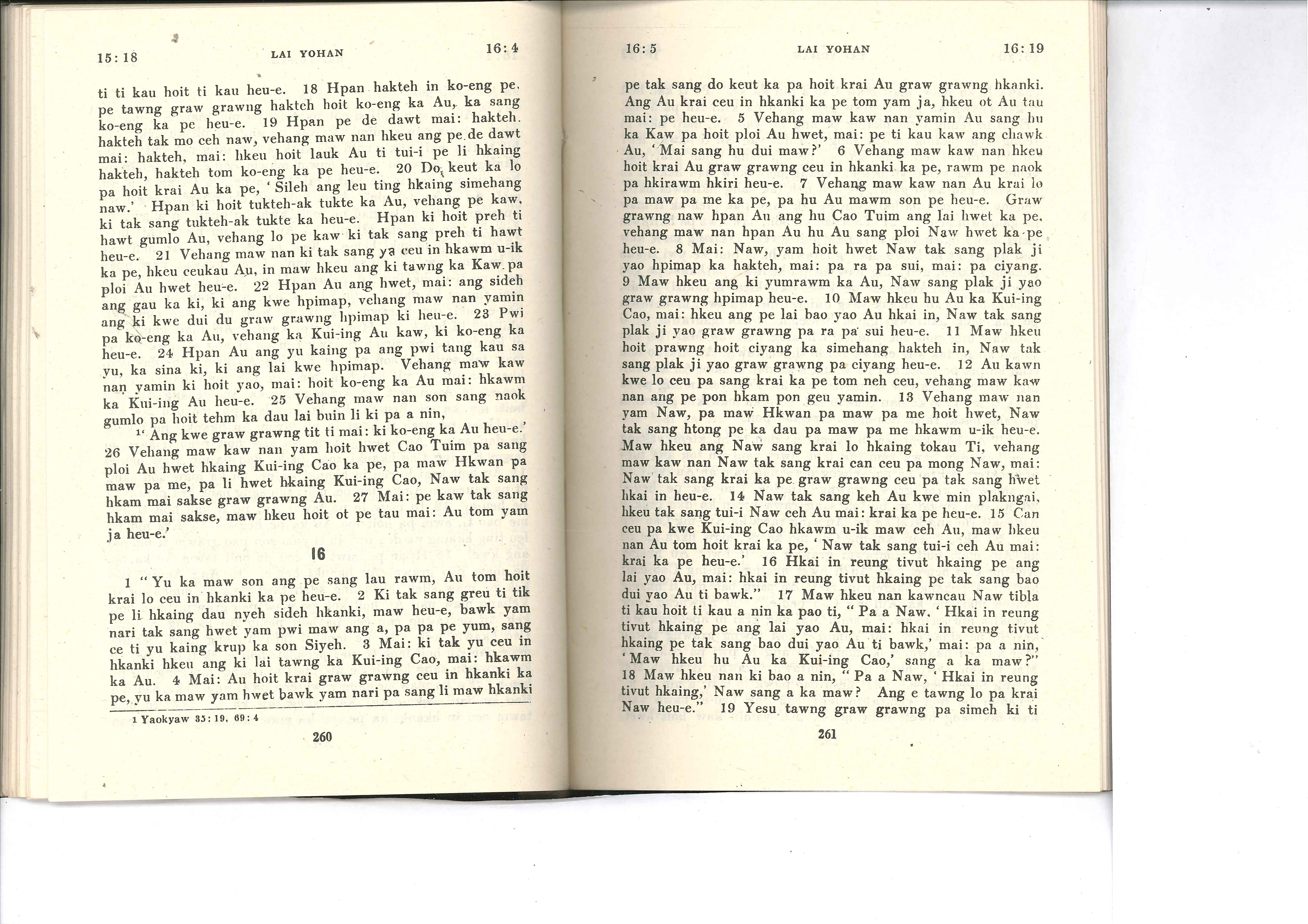 1985年佤文新約全書 約翰福音 15 章 18 節到 16 章 19 節