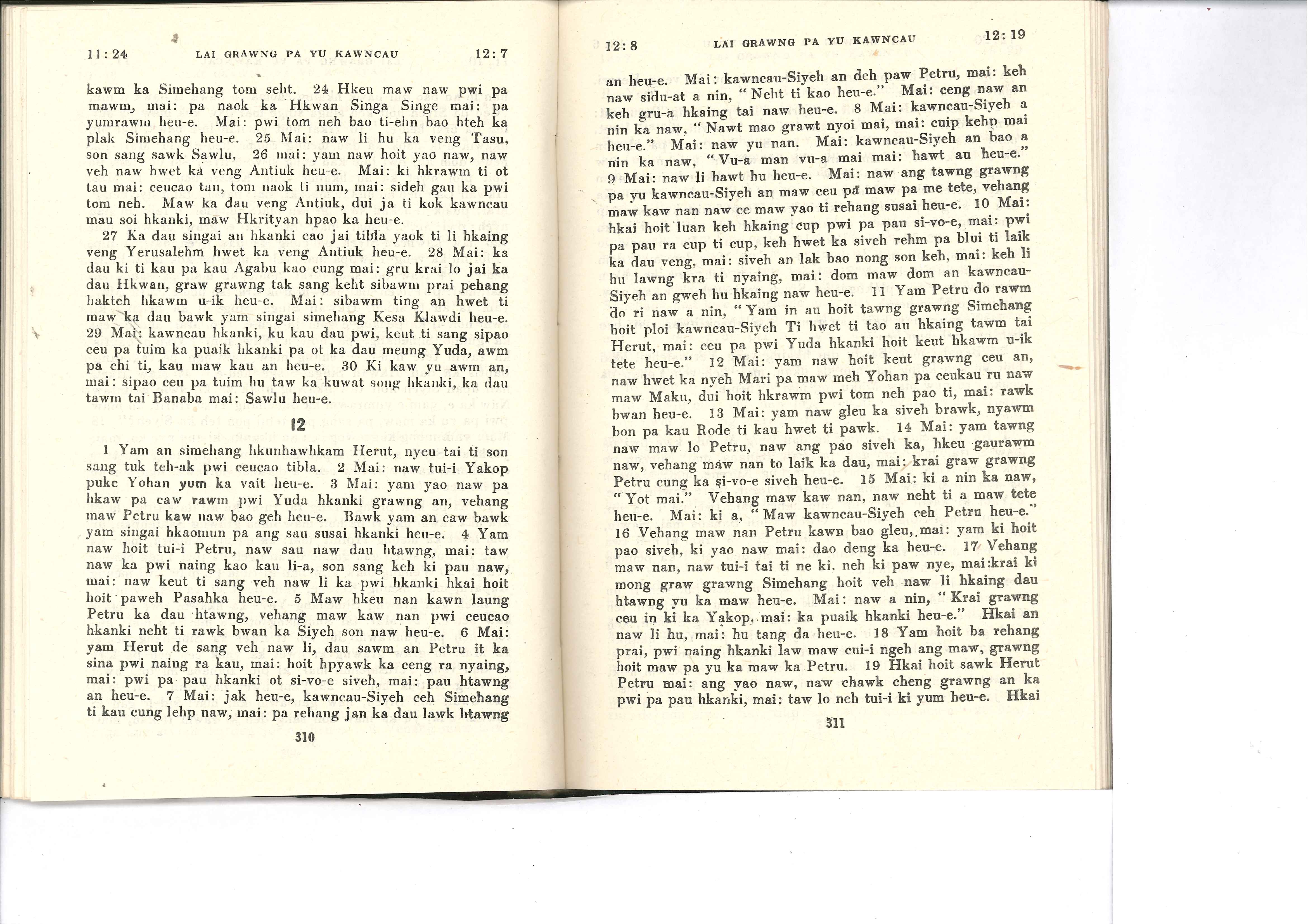 1985年佤文新約全書 使徒行傳 11 章 24 節到 12 章 19 節