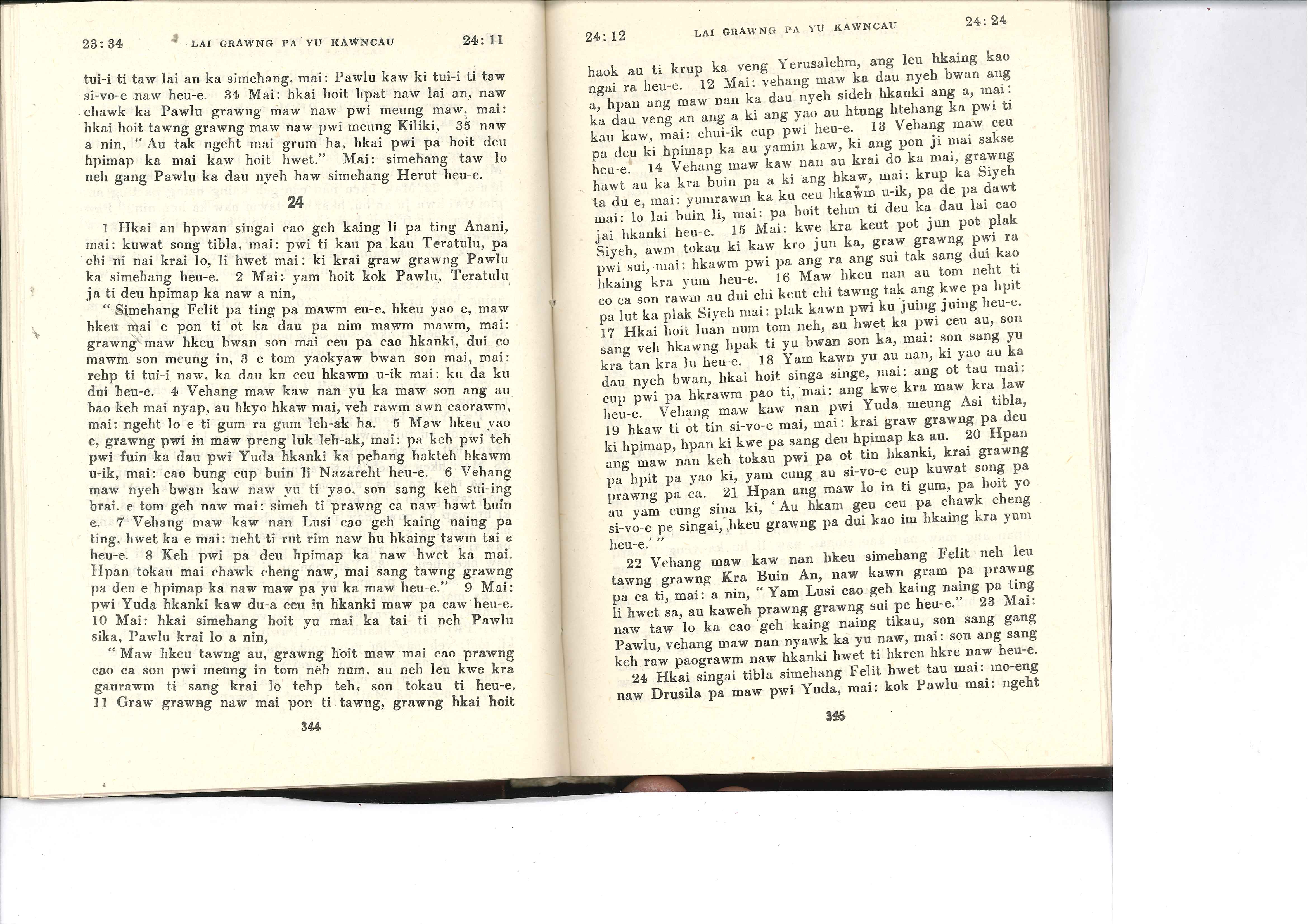 1985年佤文新約全書 使徒行傳 23 章 34 節到 24 章 24 節
